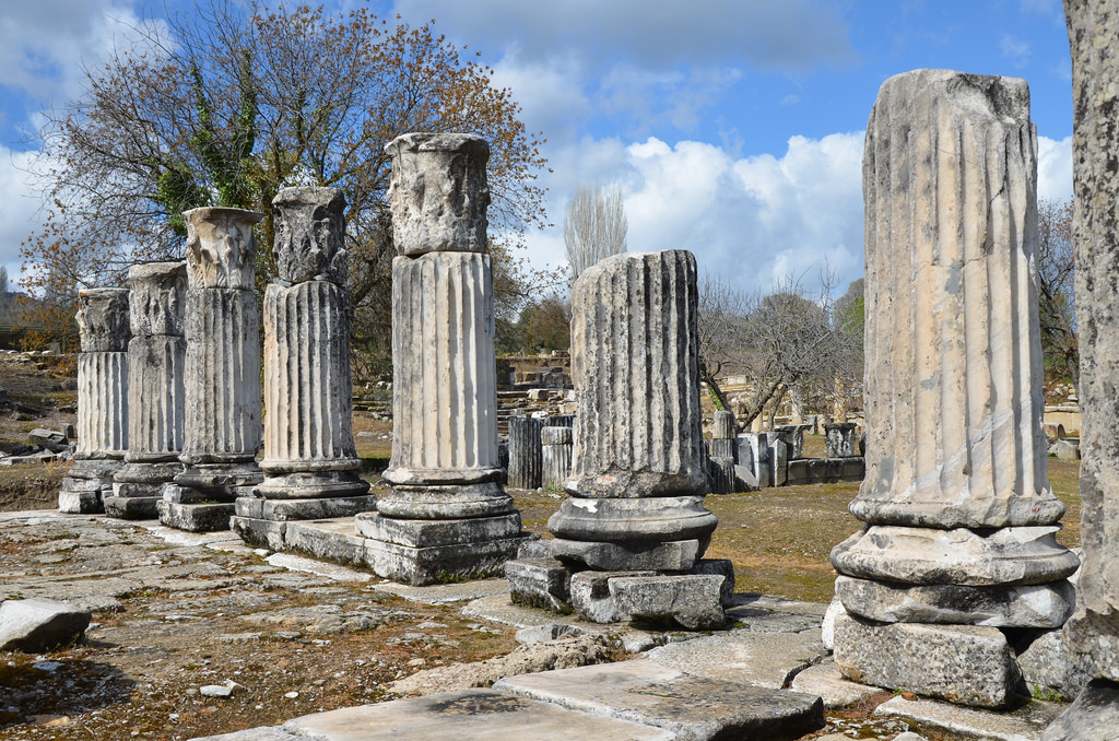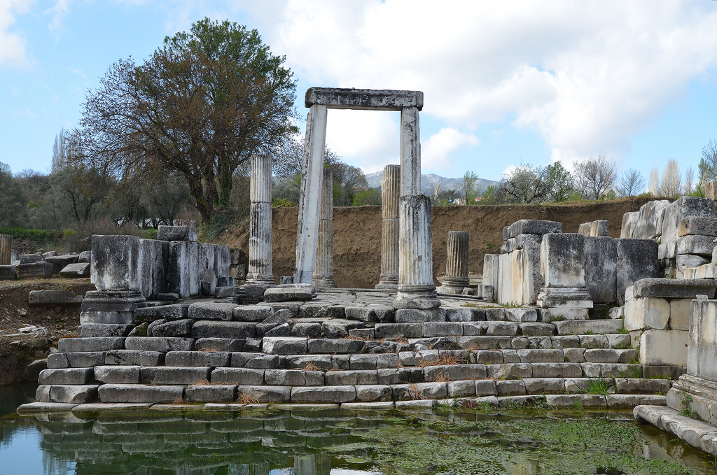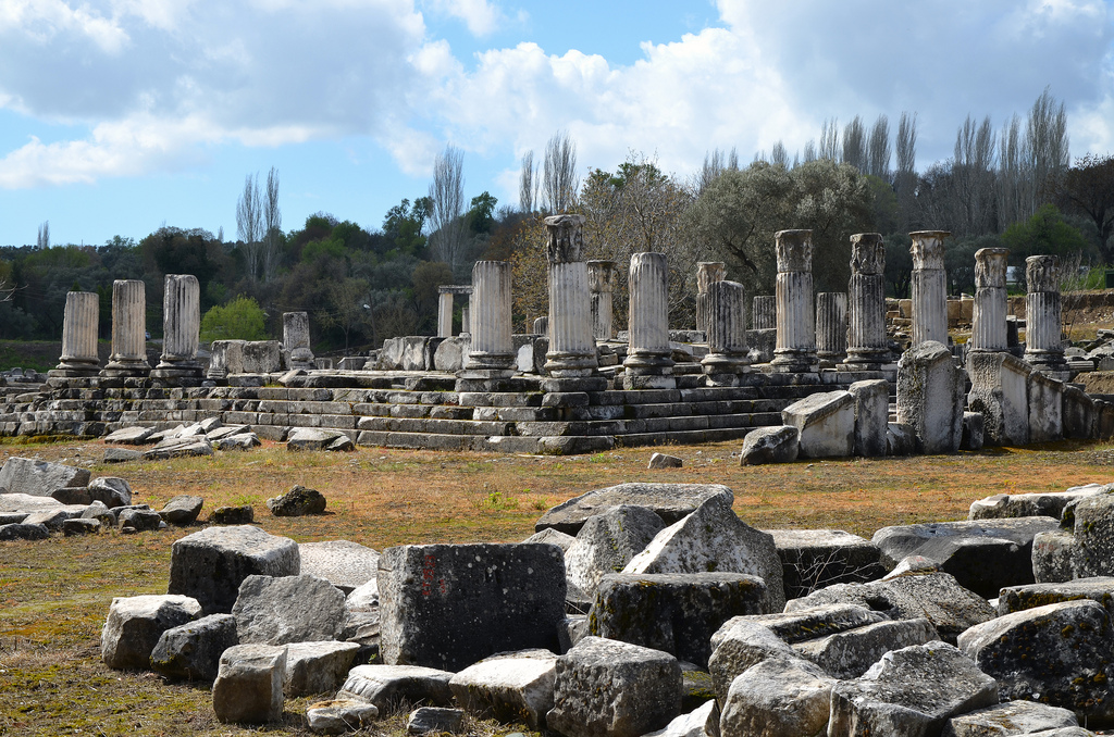 Just a few kilometres away from Stratonicea lies the ancient cult site of Lagina, one of the most significant Carian sanctuaries. The establishment of the sanctuary at Lagina as a religious centre dates back to the Seleucid period, although evidence from the necropolis suggests that the settlement’s origins date back to the 7th century BC. An 11-kilometre-long road known as the Sacred Way connected these two sites.