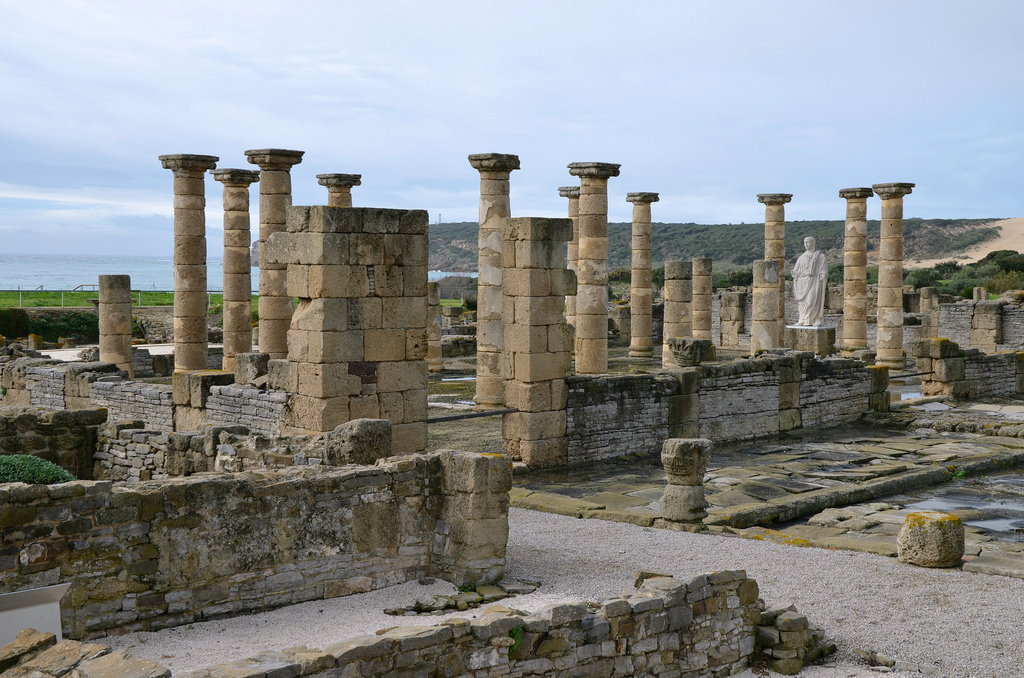 Baelo Claudia is an ancient Roman city lying on the shores of the Strait of Gibraltar in southern Spain. It was settled at the end of the 2nd century BC, and its history and subsequent development are closely associated with the salting industries and its maritime communication with North Africa. The ruins of Baelo Claudia, with its theatre, temples, forum and basilica, and especially its large fish-salting factory, testify to the city’s glory as an important and successful trading centre.