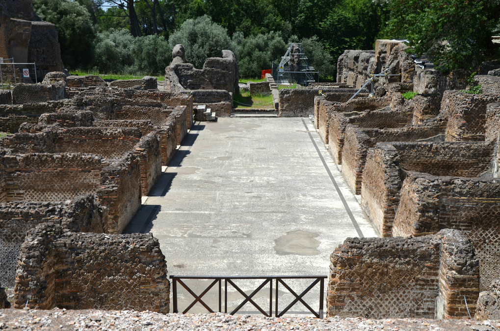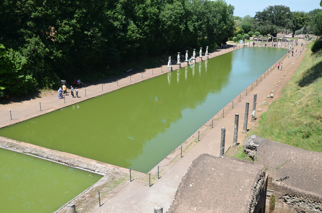 Named for the ancient city near Alexandria in Egypt, the Canopus is believed to represent the Nile Delta that Hadrian visited in AD 130, where his lover Antinous drowned that same year. The colonnade of the Canopus was supported by caryatids like those of the Erechtheion on the Acropolis of Athens. Greek and Egyptian culture and architecture were obviously reflected in his Villa. Since Hadrian was very interested in architecture and was himself a capable architect, he likely took part in the design and planning of the Villa.