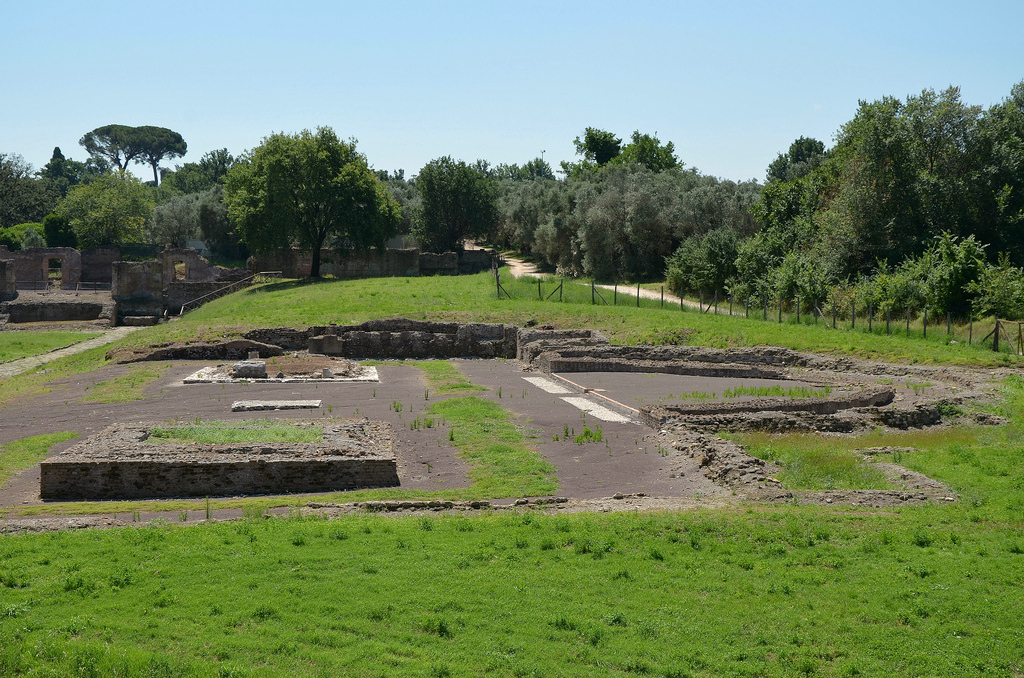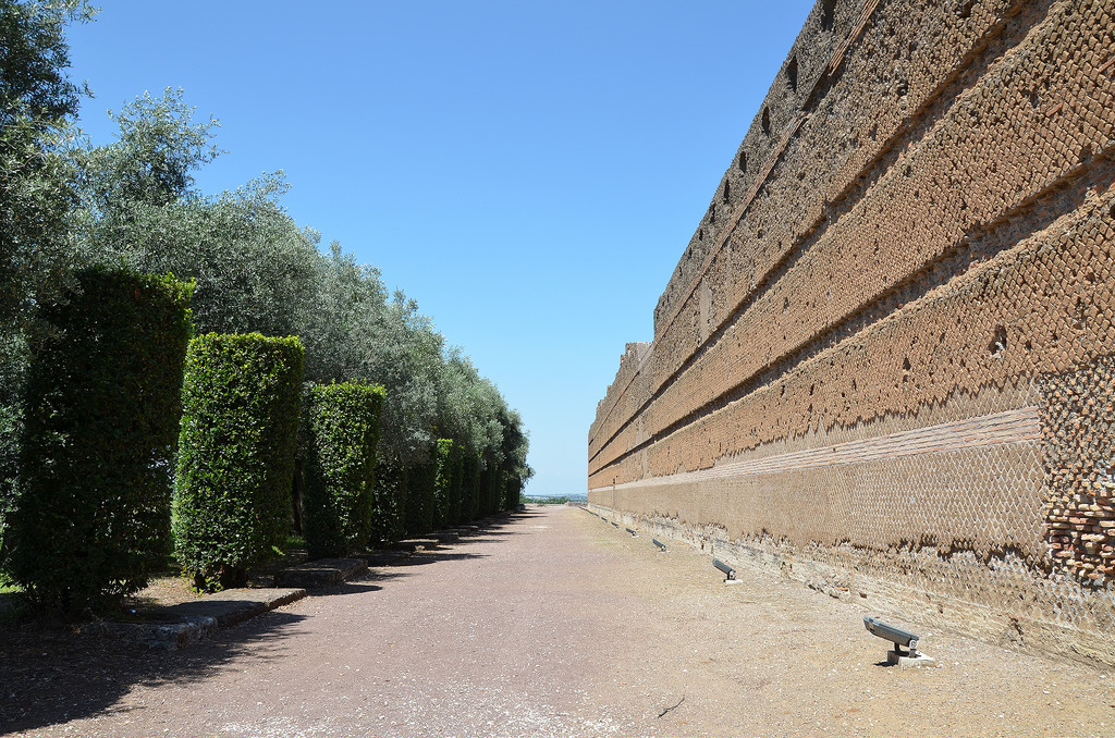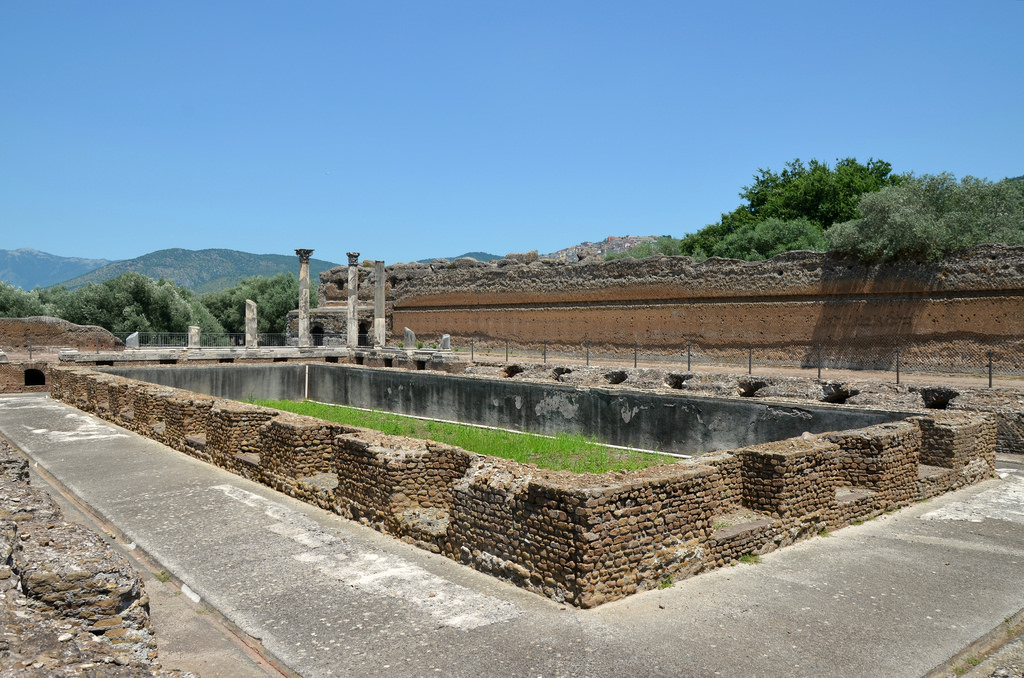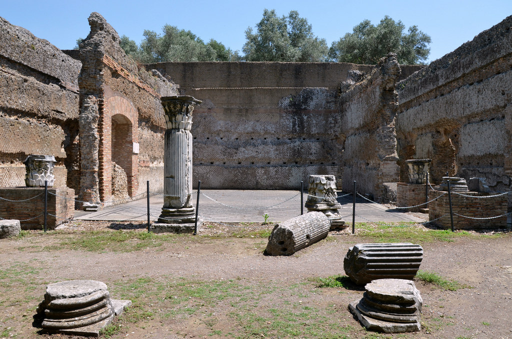 The Pecile is a large artificial terrace with a rectangular pool surrounded by a garden and colonnaded porticoes. It was intended to represent the Stoa Poikile in Athens. Its purpose was to provide an all-weather space for the ambulatio or daily walk.The monumental quadriporticus surrounding the Pecile is a wall standing 9 metres tall with a monumental entrance at the centre corresponding to the road from the north.Model of Hadrian’s Villa showing the Pecile and the Hundred Chambers. The so-called Hundred Chambers created a massive system of substructures for the Pecile, which rose 15 m above the surface on its western side.The Hundred Chambers building was a series of rooms probably used for storing supplies and housing the servants of the Villa. Located along the western side of the Pecile terrace, it consisted of four stories of rooms (between 125 and 200) accessible using a system of external walkways made of wood and concrete stairs.The so-called Three Exedras building was a magnificent structure that probably served as a cenatio, or dining hall, with three semi-circular exedrae open on three sides and internal colonnades.View of one of the three gardens of the Three Exedras building.The entrance of the Three Exedras building was dominated by a large, rectangular fountain around which were found twelve statue bases.The Building with a Fish Pond is a large complex on three levels with a pool surrounded by a colonnade composed of forty fluted white marble columns in the composite order.The Building with a Fish Pond. The structure dates to Phase II (125-133 AD).The Nymphaeum-Stadium was a large garden with fountains and two pavilions separated by a central plaza.The Nymphaeum-Stadium and its long rectangular pool.The Heliocaminus Baths was an elegant bathing complex with opus sectile decorating both floors and walls. It was the oldest bath complex of the Villa, constructed on a portion of the site of the former Republican Villa.The circular hot room of the bath complex was heated by sunbeams (heliocaminus). The room was roofed by a coffered dome with a central oculus and had large windows.One of the Villa’s most striking and best-preserved parts consists of a pool named Canopus and the so-called Serapeum, a monumental summer cenatio with a nymphaeum set at the southern end of the Canopus.The Canopus comprised a terraced valley (ca. 160 m) with a canal (119 x 18 m) along its main axis. Around the canal ran a colonnade, curved on the northern side, single on the western side, and double on the eastern side.The Canopus was an open-air museum consisting of Roman copies of Classical Greek original statues, larger than life-size. These lavish statues provided a feast for the eyes of banqueters dining in the Serapaeum. The Canopus dates to Phase II (AD 125-133).The rounded north end of the Canopus.The middle of the western side of the Canopus, where four Caryatids and two Sileni stood in place of columns. These allude to Athens: the Caryatids to the Erechtheion on the Acropolis, the Sileni to the Hadrianic silenoi decorating the stage of the Theater of Dionysus.The rounded north end of the Canopus.Statues of Ares and an Amazon (Mattei type) in the Antiquarium of the Canopus. The Amazons are copies of statues in the Temple of Artemis at Ephesus.Statues of an Amazon (Sciarra type) and Hermes in the Antiquarium of the Canopus.The Antiquarium of the Canopus. Statues of a crocodile and personifications of the Nile and Tiber have also been found near the Canopus.The so-called Serapeum was dominated by a half-dome under which was constructed a semi-circular stibadium (13) on which banqueters reclined in the open air.The Piazza d’Oro (Golden Hall) is located on the northern edge of the Villa. It was a vast building with a quadriporticus garden and water basins.Side view of the main entrance of the Piazza comprised of a vaulted vestibule and related rooms.The quadriporticus garden of Piazza d’Oro is a rectangular open court filled with flower beds and water basins.The southern side of Piazza d’Oro had a cenatio and perhaps a library suited for a cultured emperor like Hadrian.The Maritime Theatre was a complex with 35 rooms separated by a marble-lined canal from a circular colonnaded enclosure paved in white mosaic.The colonnaded porch of the Maritime Theatre. The “island” rooms, paved in opus sectile, were accessible at entrances using two retractable wooden bridges.The design was inspired by the Roman house with an atrium in the middle centred on a basin comparable to an impluvium.The complex, generally thought to have been dedicated to Hadrian’s personal use, dates to Phase I (AD 118-125).Hadrian’s Villa.The large semi-circular Nymphaeum is located on the southern side of Piazza d’Oro, where water flows from seven niches. A basin collected the water at the foot of the niches, pouring into the long central basin and the garden’s fountains.Model of Hadrian’s Villa showing the Piazza d’Oro (Golden Hall) and the Gladiator’s Arena. The plan of Piazza d’Oro is very similar to Hadrian’s Stoa in Athens, a library built by Hadrian during the same period (AD 123-125).The Triclinium (probably a summer cenatio) is located on the eastern side of the Piazza d’Oro with a vaulted ceiling and niches on the rear wall from which water flows into an ellipsoid basin.The Building with Doric Pillars was located between the Imperial Palace and the Guard Barracks. It was a rectangular space with a portico delimited by pillars connected by an architrave of the Doric order (hence the structure’s name).View of the southeast corner of the Doric portico. The hall may well have been used for imperial meetings and audiences. The structure dates to Phase I (AD 118-125).The Large Baths. The structure dates to Phase I (AD 118-125).One of the frigidaria inside the Large Baths.Model of Hadrian’s Villa showing the Small Baths (left) and the Large Baths (right).The ceiling inside the Large Baths was 