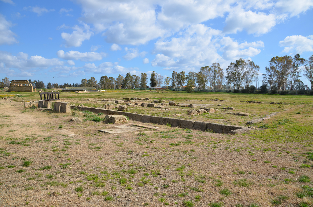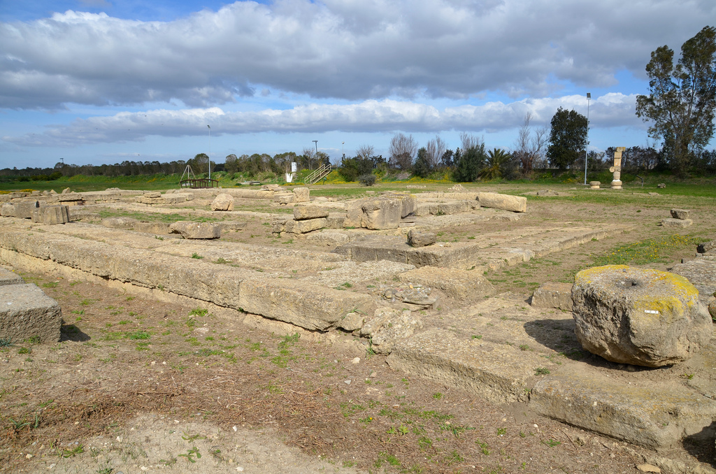 The foundations of the Temple of Hera (Temple A). This temple belongs to an early archaic building with an exterior colonnade (8 x 17 columns). The order was Doric.