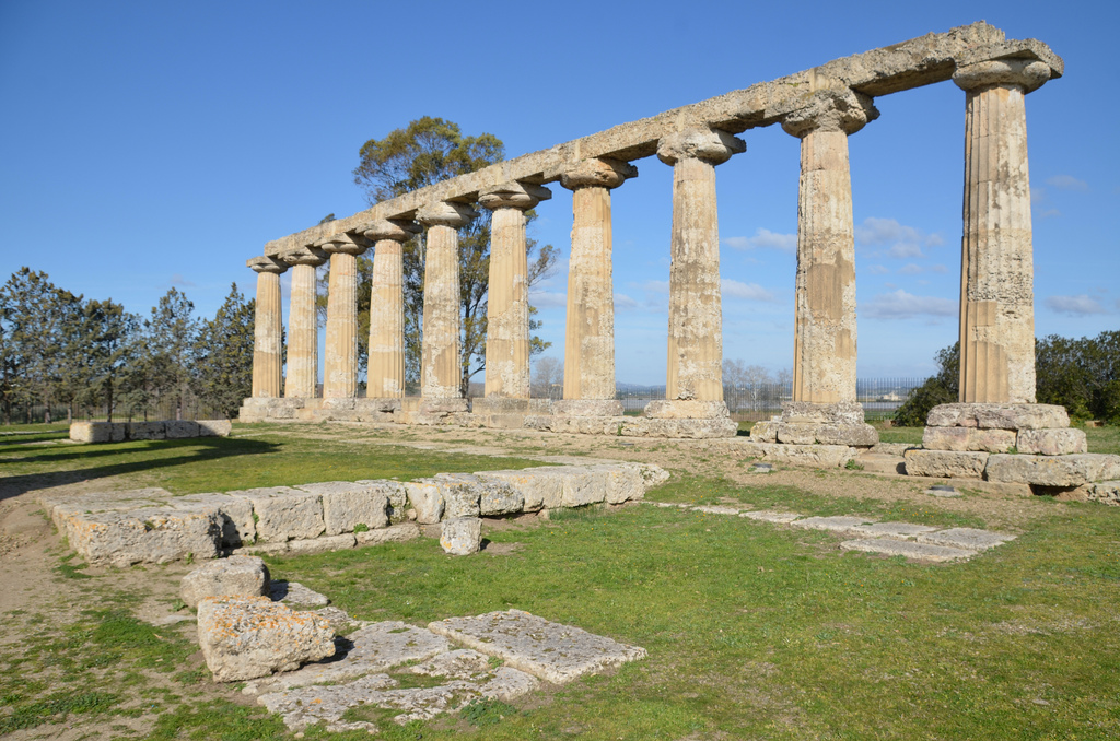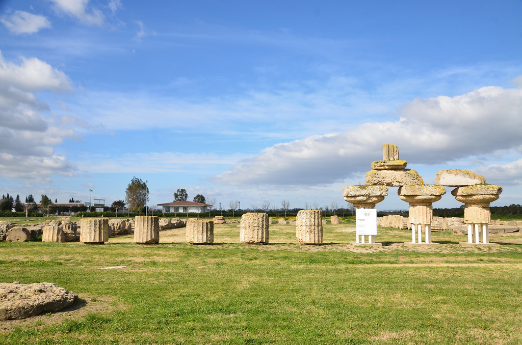 Metapontum was an ancient Greek city founded by Achaeans in the late 8th or 7th century BC along the Gulf of Tarentum near the mouth of the Bradano River. It is located in modern Metaponto on the southern coast of the Basilicata region of Italy, 50 kilometres to the west of Taranto. Renowned for the fertility of its farmland, Metapontum thrived on agriculture and trade, and the city became one of the most prosperous colonies in Magna Graecia. Today, the best surviving evidence of Metapontum’s prosperity is an elegant Doric temple of the 6th century BC dedicated to Hera. An archaeological park has remains of temples and buildings which stood in the central sanctuary complex, while the nearby National Museum of Metaponto contains the rich heritage of archaeological materials found in the Greek colony.