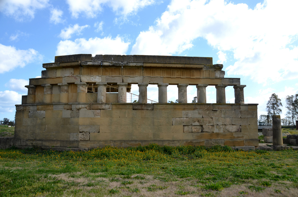 The foundations of Temple C, the oldest temple in the sanctuary. ca. 600 BC – ca. 475 BC. The name of the divinity to whom the Temple was dedicated is uncertain. It may have been dedicated to Athena, on the basis of an archaic inscription referring to Athena.