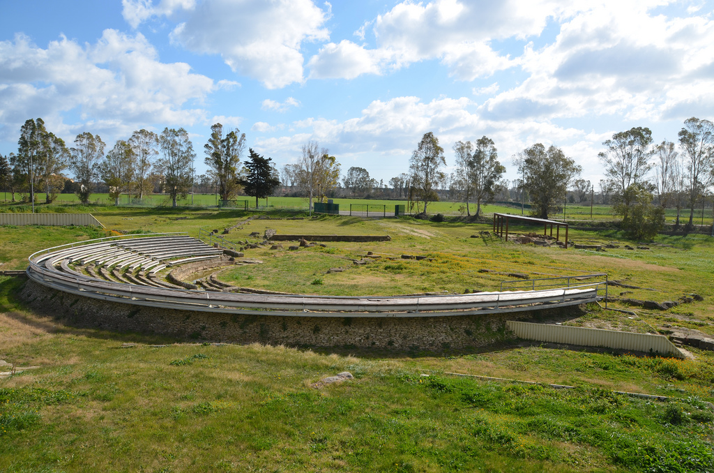 Access to the upper part of the cavea was provided by six ramps between the retaining wall and the facade. Part of the external walls of the threatre has been reconstructed.