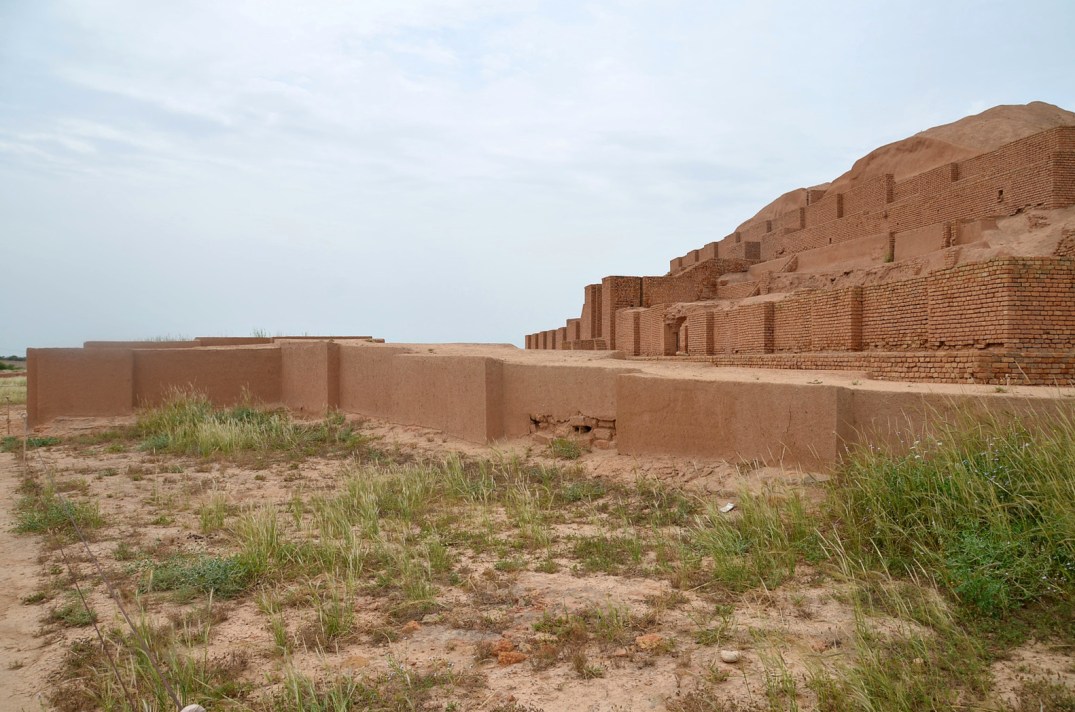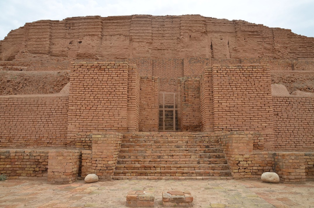 The imposing ziggurat originally measured 105.2 metres on each side and about 53 metres in height over five levels. It was crowned with a temple dedicated to Inshushinak. A single stairway in the middle of each of the ziggurat’s four sides led to the top of the first story. Only priests and royalty had access to the highest level. The site also featured an offering platform where bulls and goats would have been sacrificed. The ziggurat was given a facing of baked bricks, several with cuneiform characters giving the names of deities in the Elamite and Akkadian languages. Every 11th row of outer bricks was stamped with an inscription. Only a few scribes would have been able to read them.