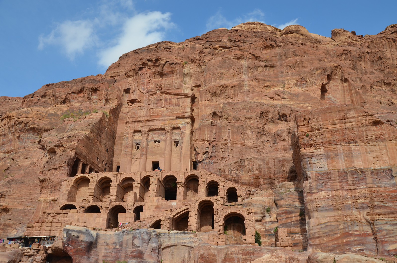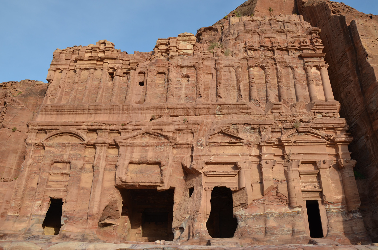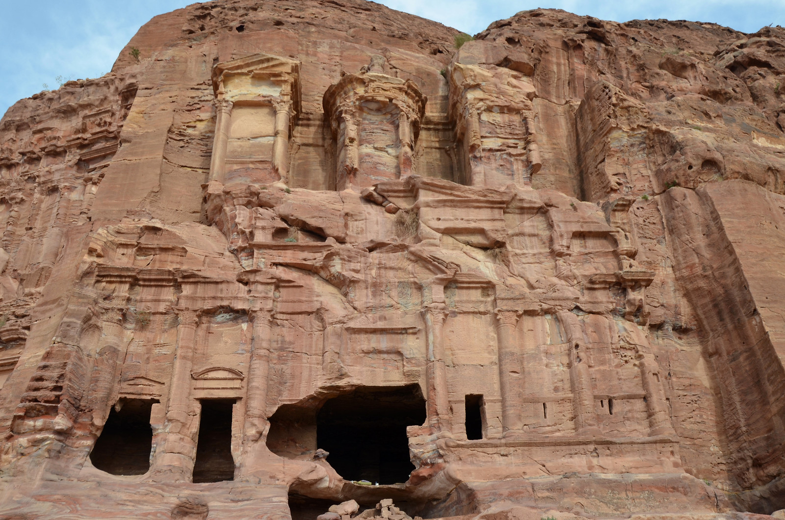 The Palace Tomb was meant to resemble a palace. It has one of the largest facades in Petra, with part of the upper levels built instead of carved out of the rock.