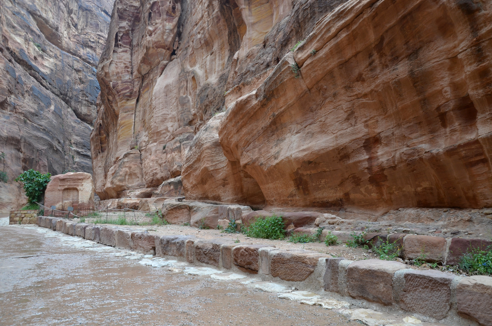 On both sides of the path through the Siq, the remains of water conduits can be seen. They were built together with the protection system against flash floods and paved roads in the last decades of the 1st century BC.