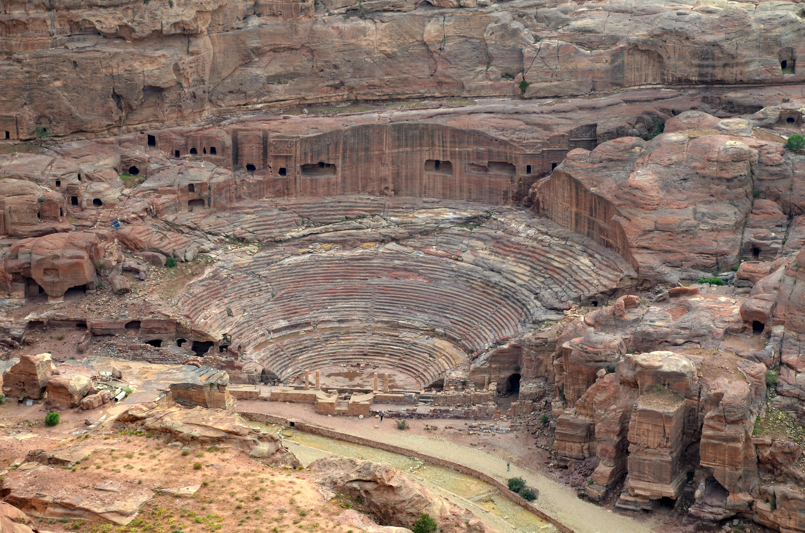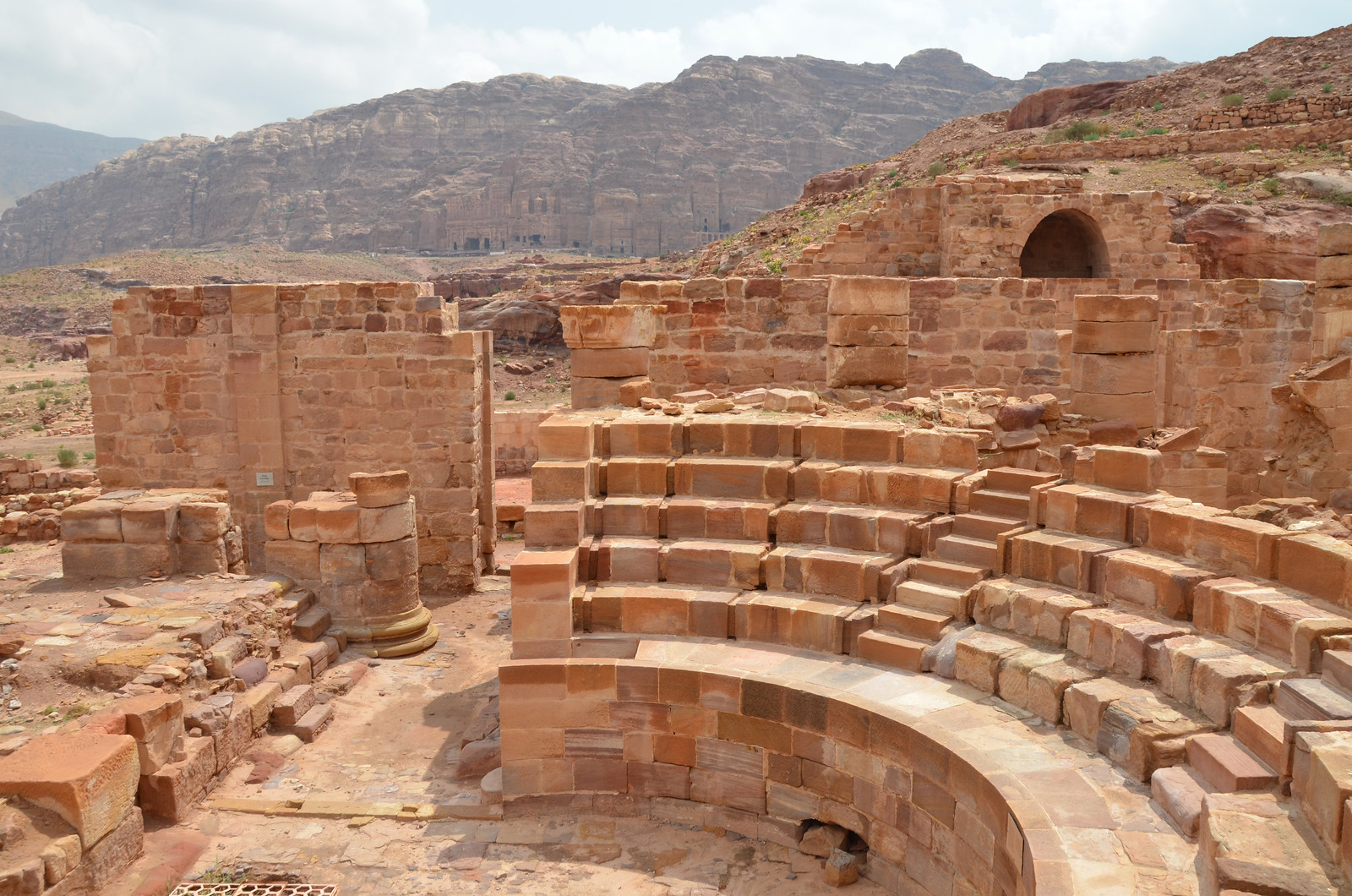 The theatre of Petra was carved into the side of the mountain at the foot of the High Place of Sacrifice.