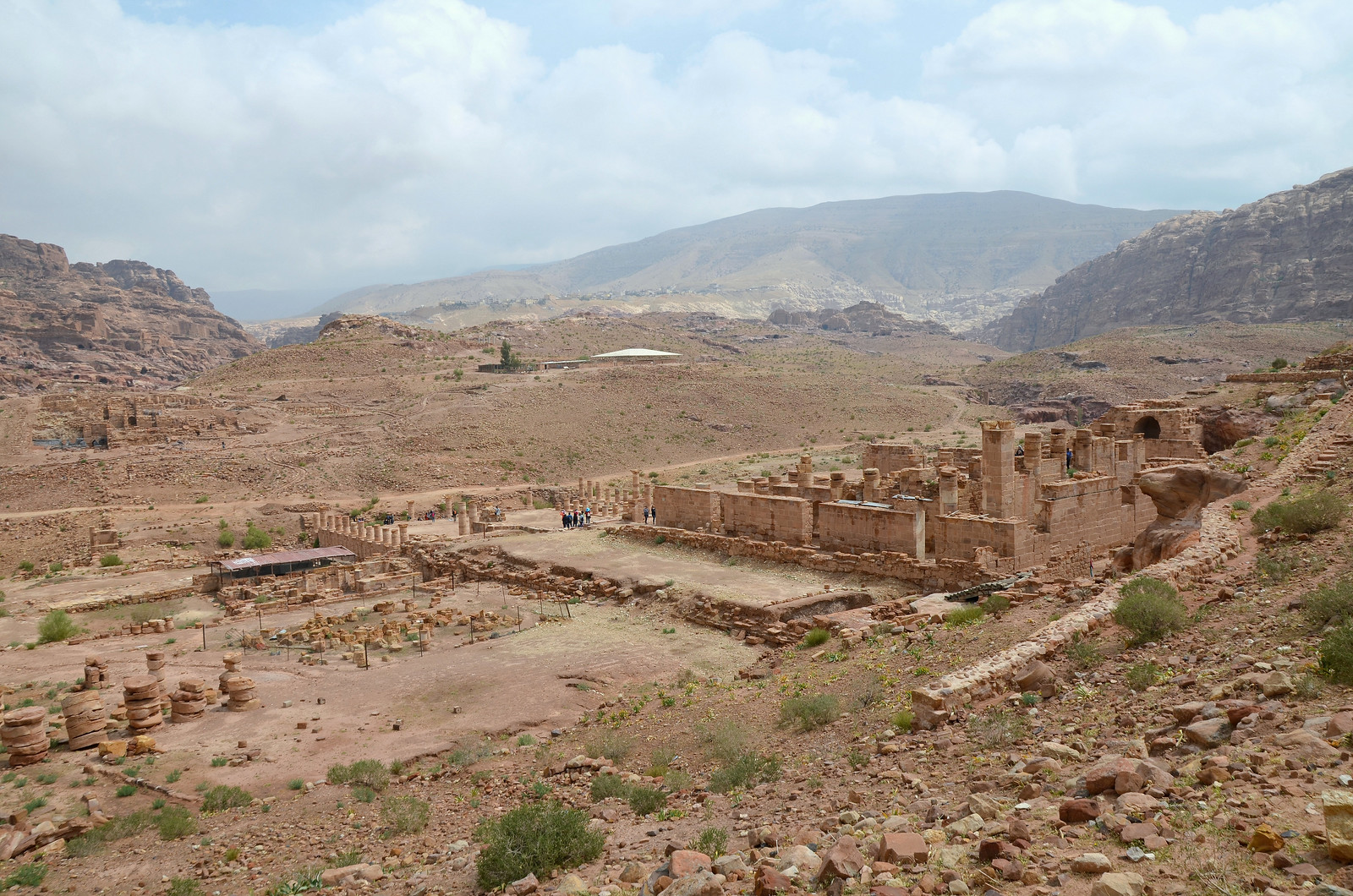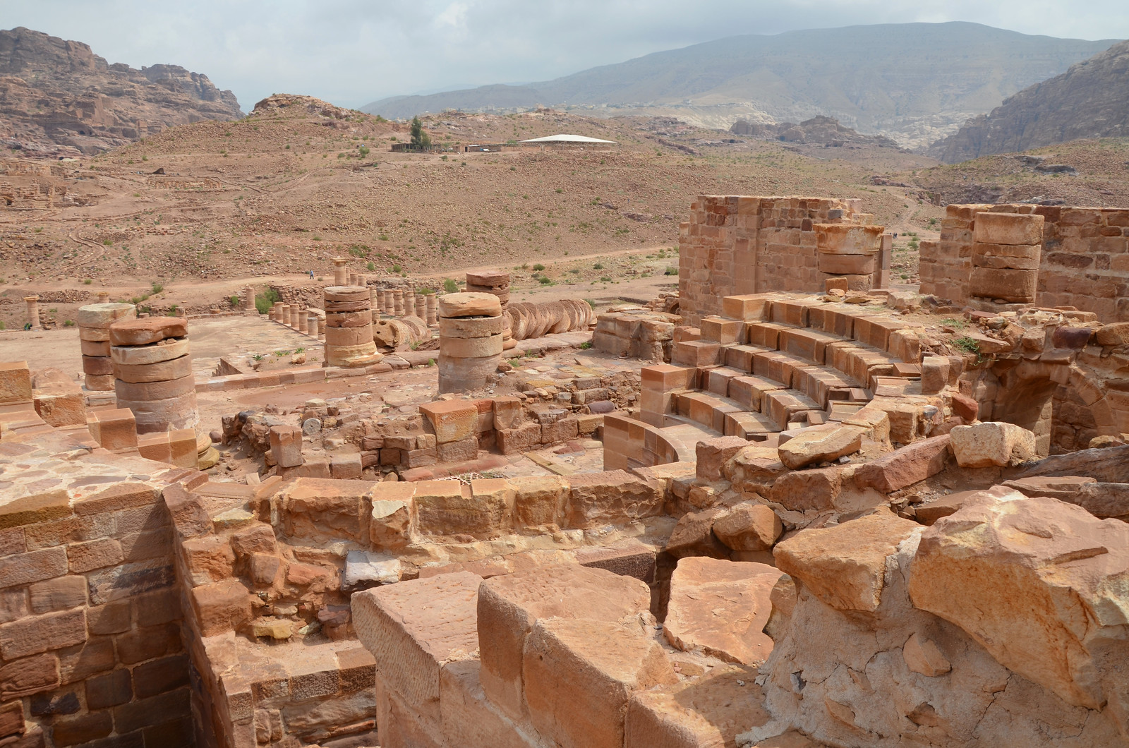 View of the Qasr al-Bint, one of the main temples in Petra located to the northwest of the Great Temple. The temple was probably the cult centre of the city’s patron deity, Dushara (“Lord of the Shara Mountains”).