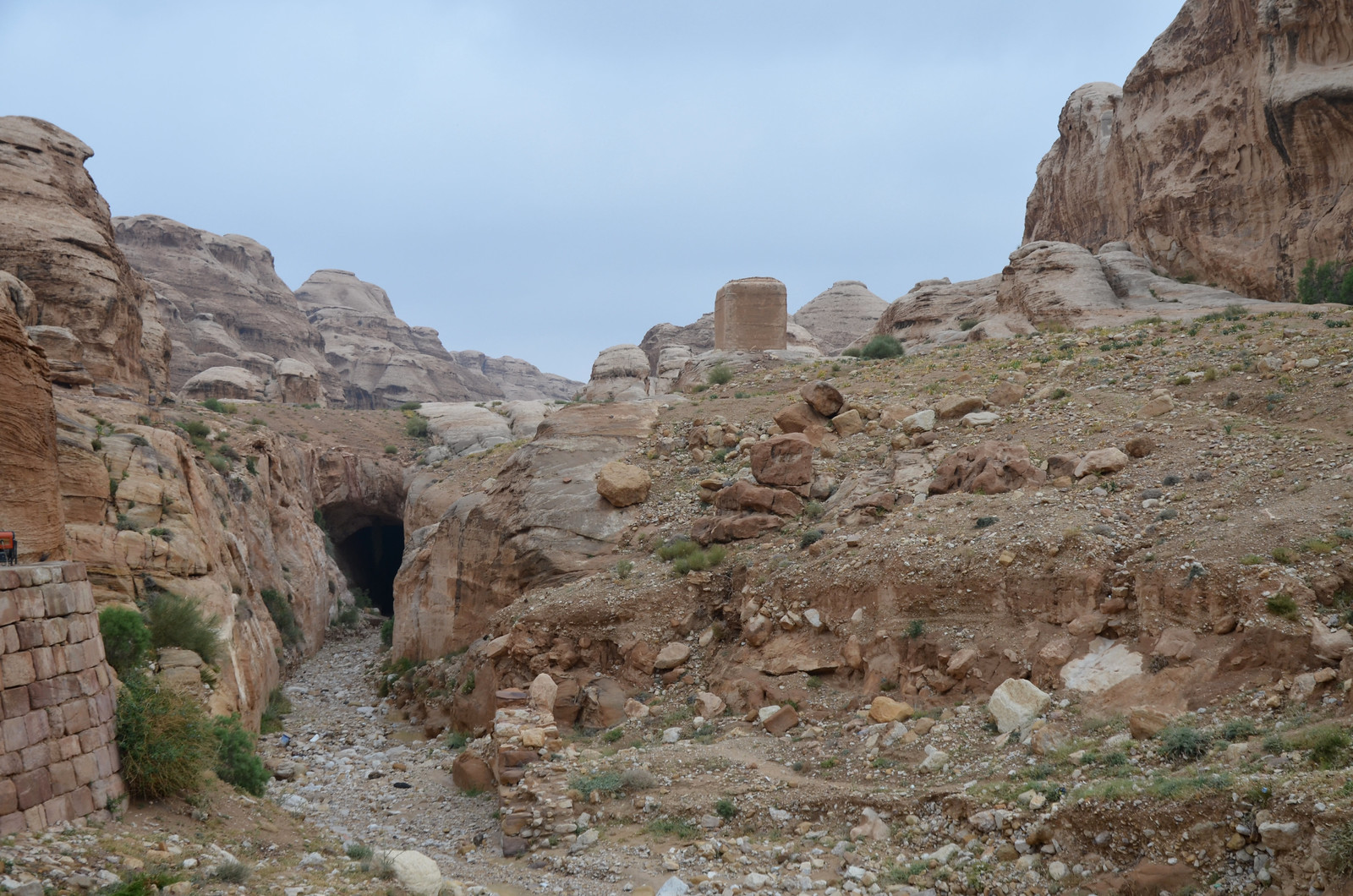 An 88-metre-long Nabataean tunnel was constructed in the third quarter of the 1st century BC to prevent floodwater from Wadi Musa from flowing through the Siq.