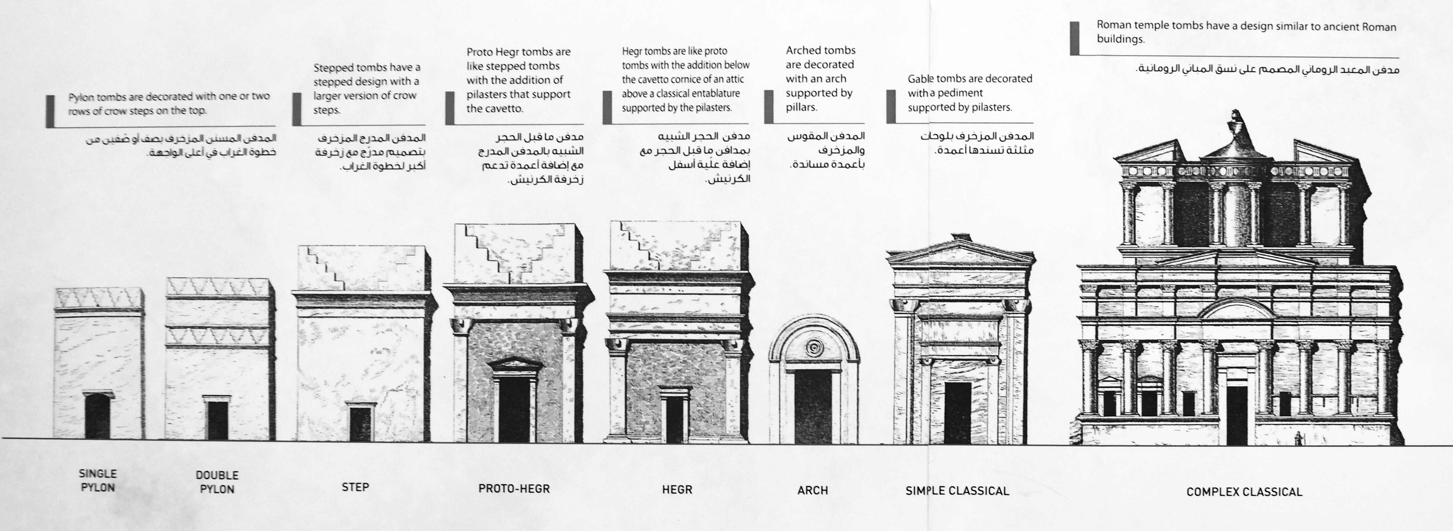 The Theatre Necropolis with tomb facades has been carved out of the northeast face of the Jabal Al-Madhbah in several rows, one above the other.