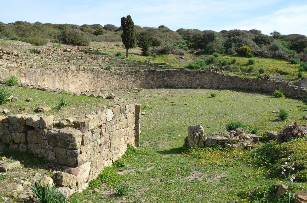 The cavea leans against a natural slope. Up to 7 rows of seats have been preserved.