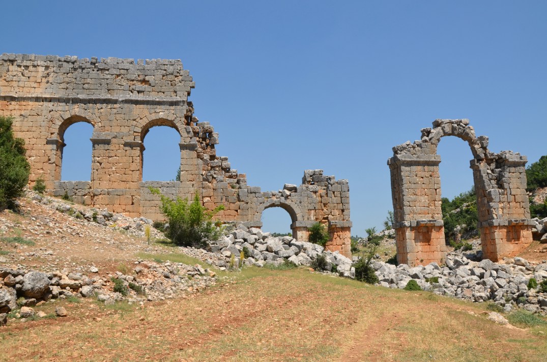 The most important Roman buildings on the site date from the 1st to the 3rd century AD and include a theatre, a nymphaeum, an aqueduct, and many tombs dug in the rock. The city is entered through a monumental gate, of which five columns have survived. Then a colonnaded street runs alongside the temple of Zeus Olbios and leads to the temple of Tyche. To the northwest, a three-arched Roman gate leads out of town.
