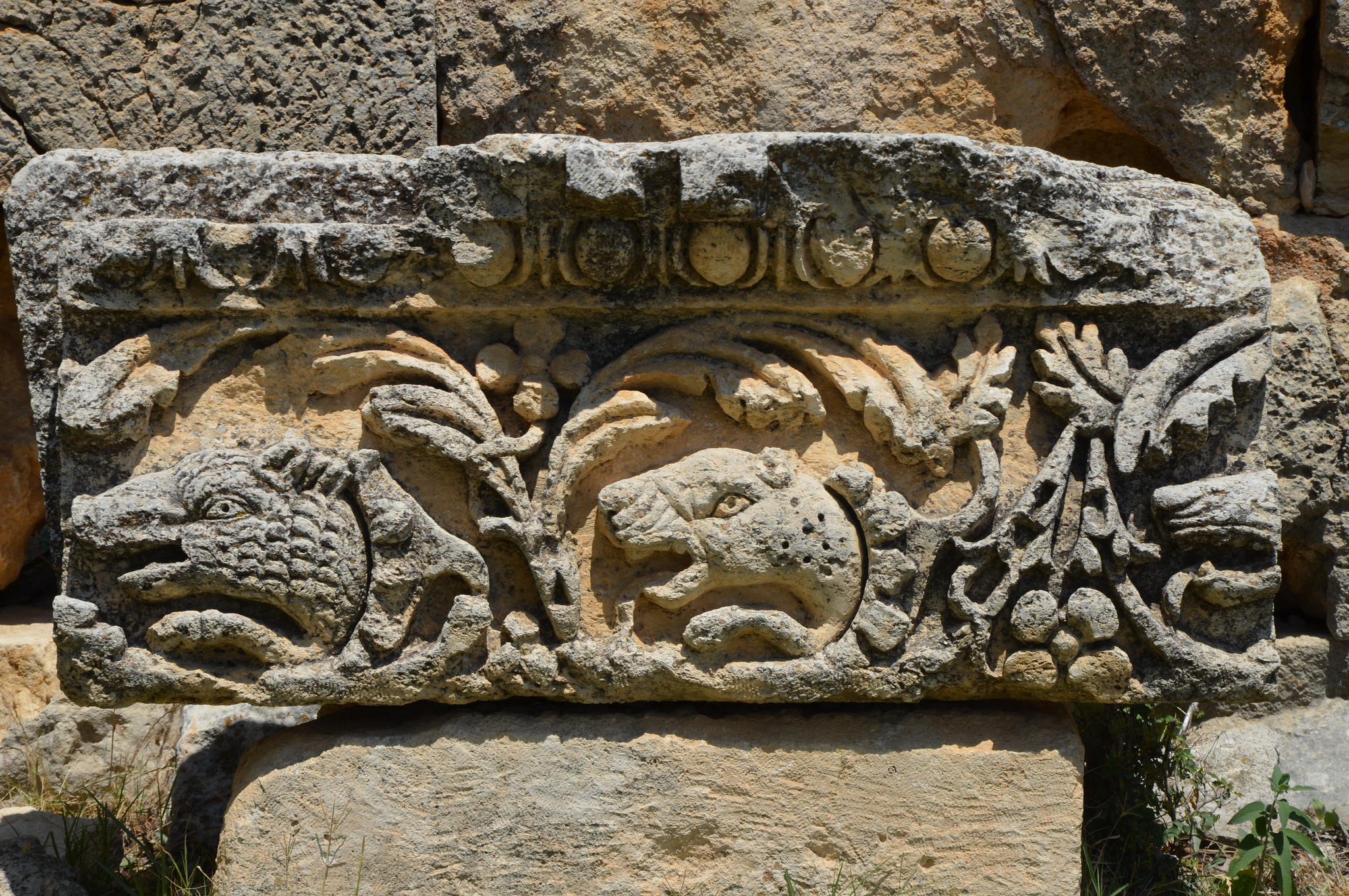 An architectural block with a boar and a lion decorated the Temple of Zeus Olbios.