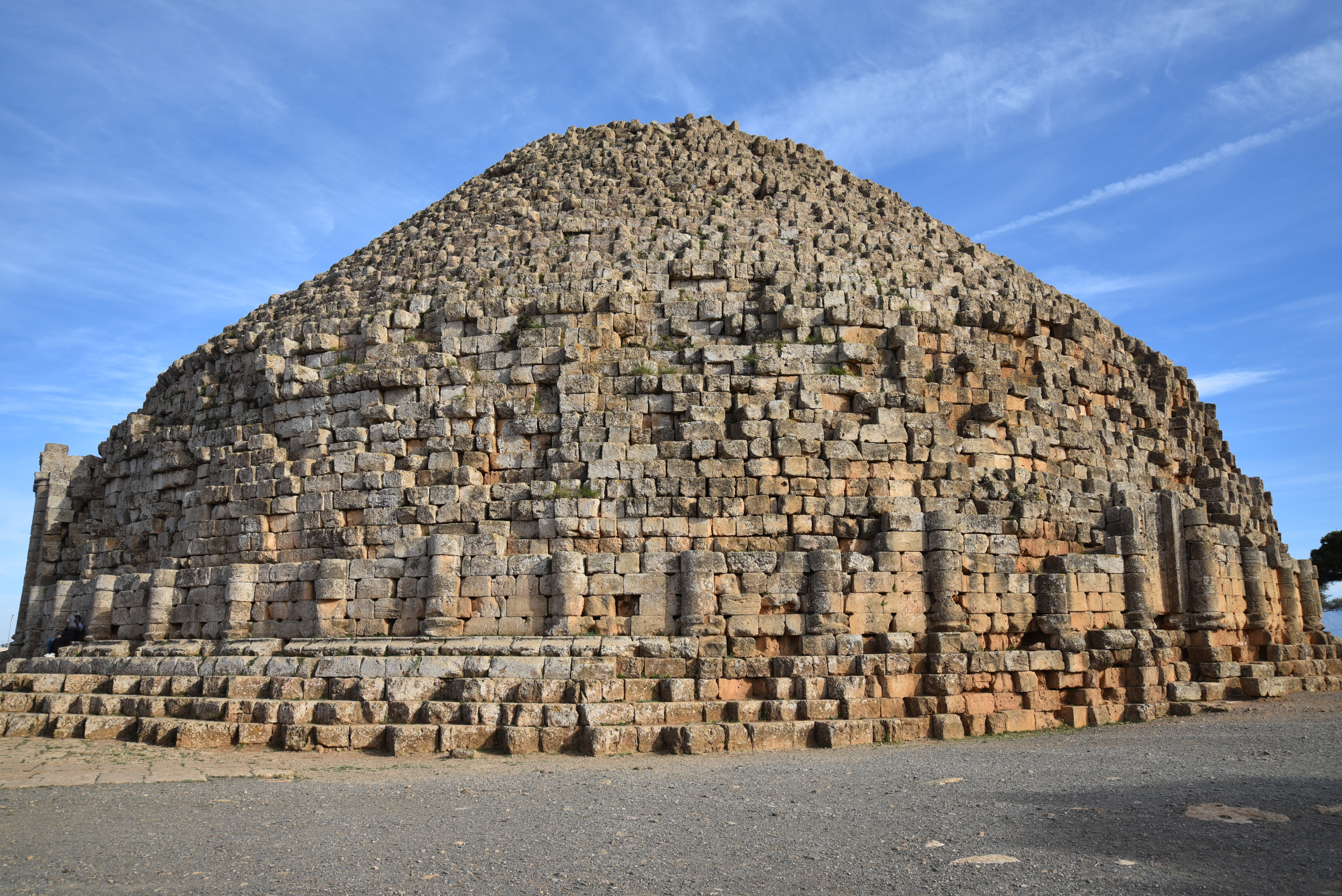 A similar monument can be found in eastern Algeria, the Medracen, located near Batna (see here). It differs in size, measuring only 18.5 m high, and has a different internal structure; it is also older.