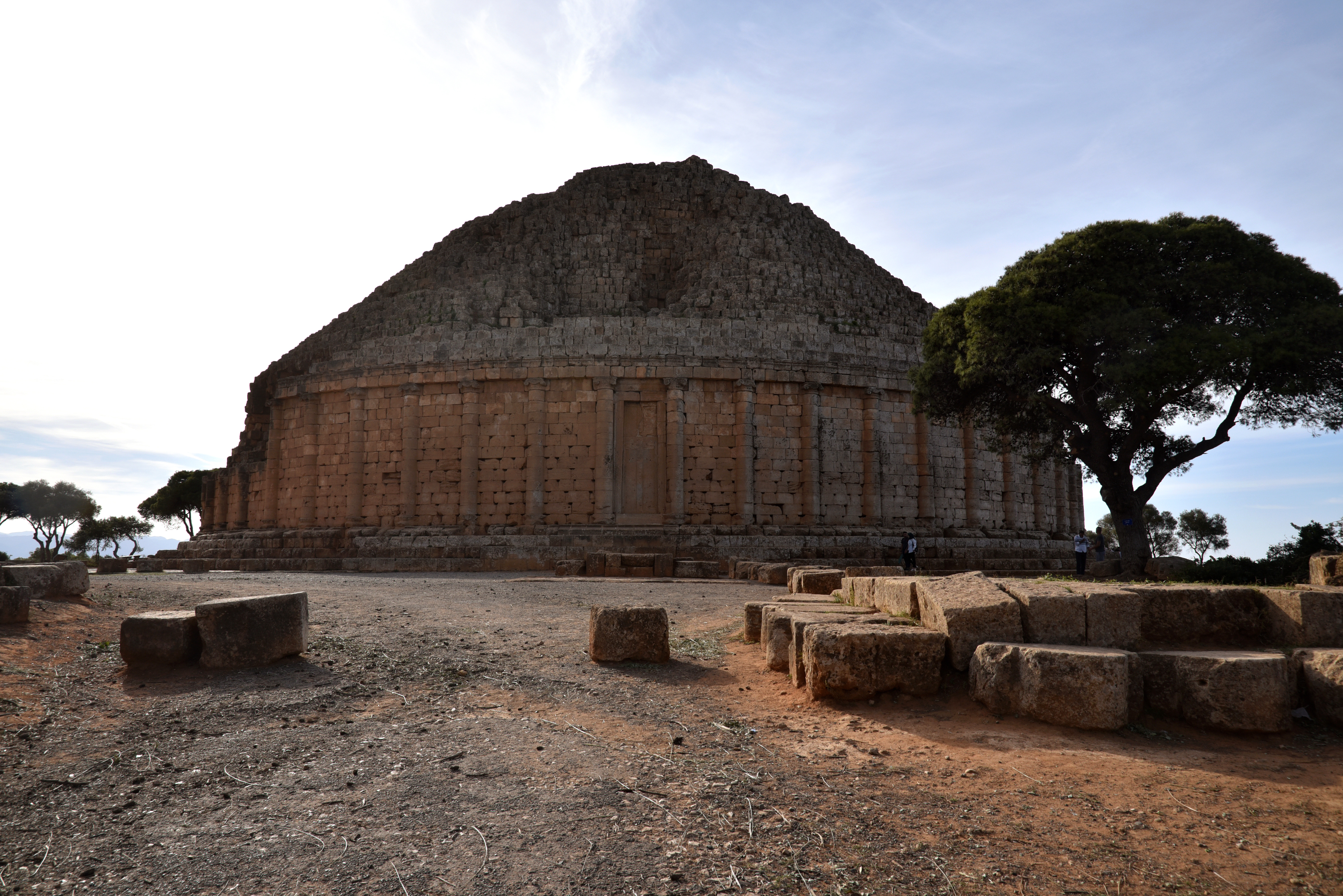 The architectural design of the mausoleum resembles other Numidian tombs and draws inspiration from the Mausoleum of Augustus in Rome, which was built around 28 BC, shortly before Juba II returned to Numidia after his time in Rome. Compared to other North African mausoleums, its design is more Hellenized, featuring 60 Ionic columns surmounted by a frieze and cornice that show strong Greek influence. The Roman geographer Pomponius Mela mentioned the mausoleum around AD 40 as a communal tomb of the royal family (Pomponius Mela, Chorographia 1.26).
