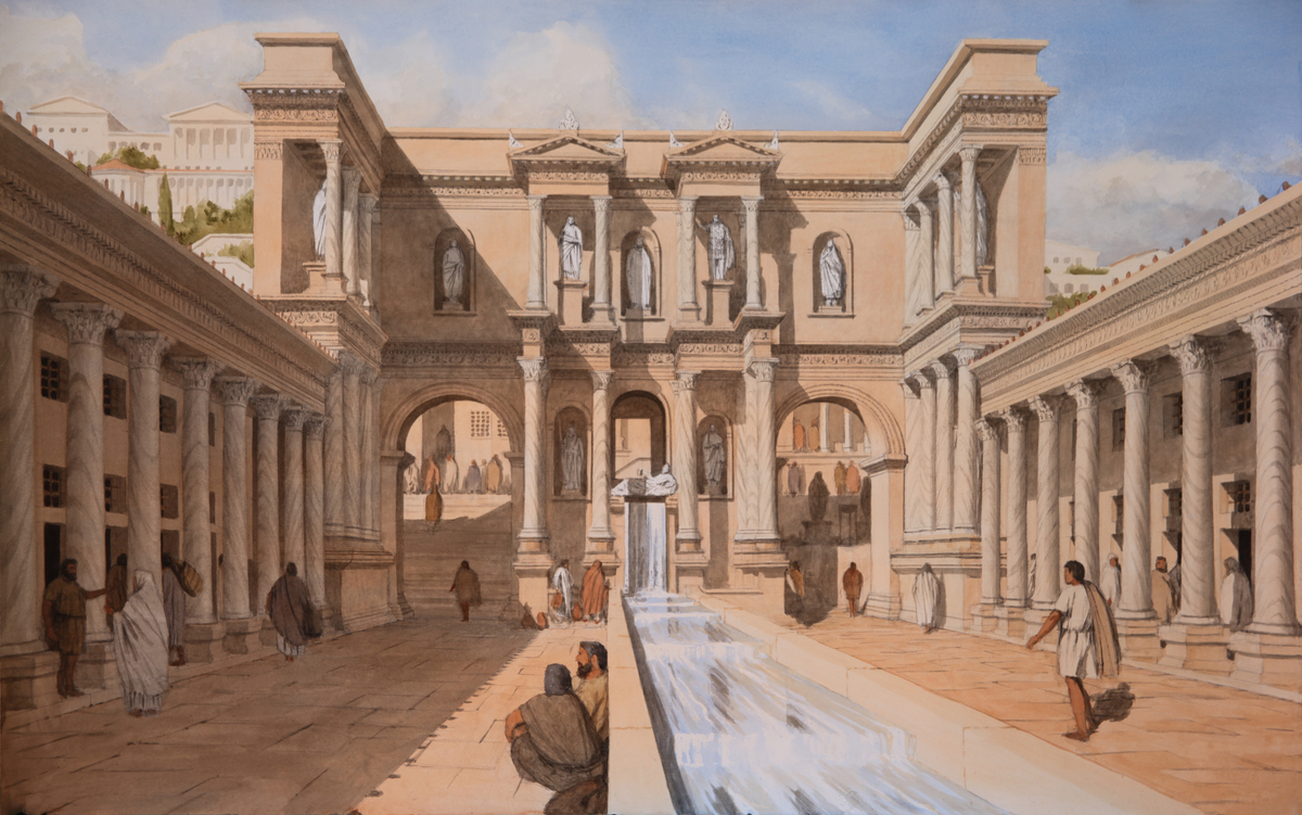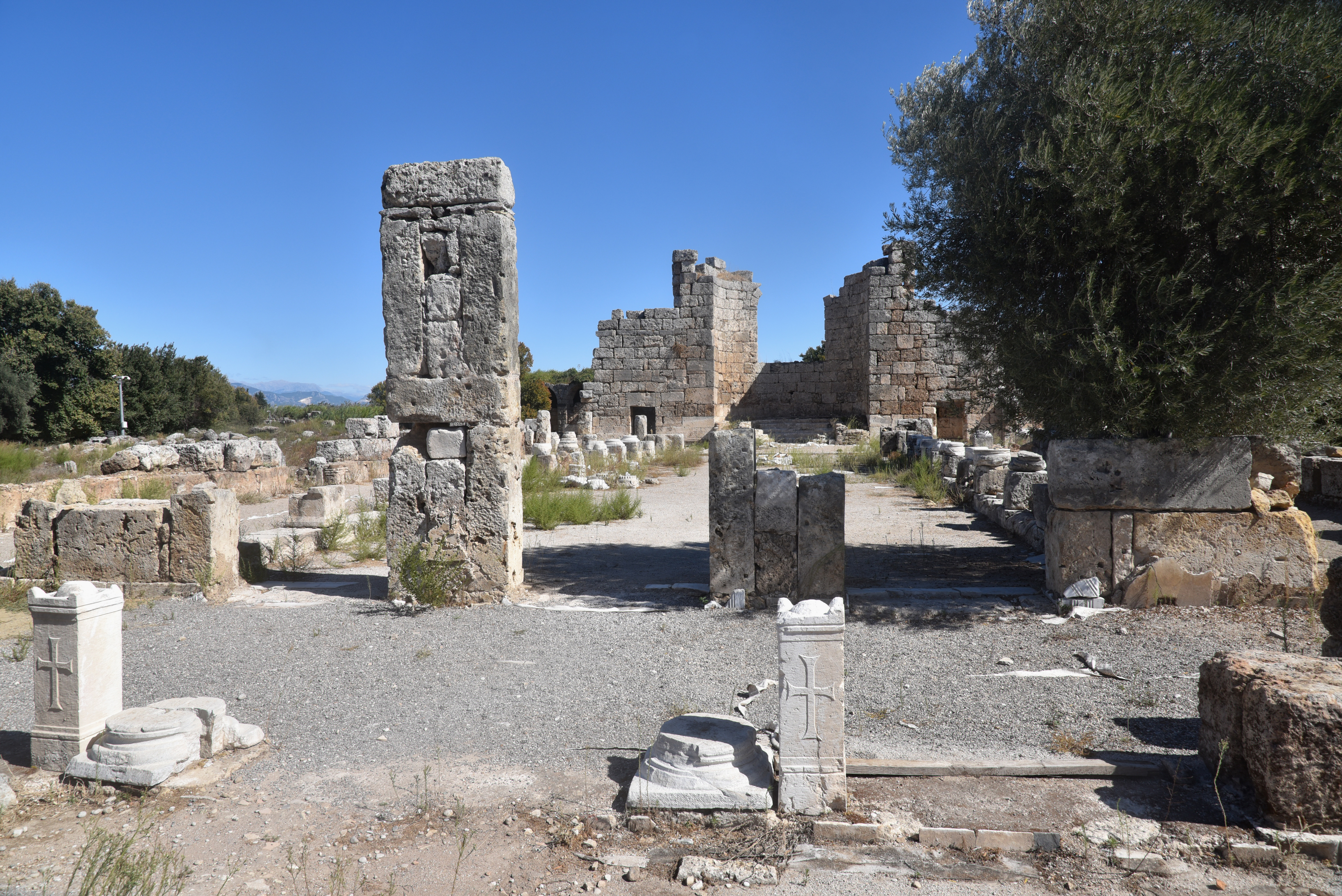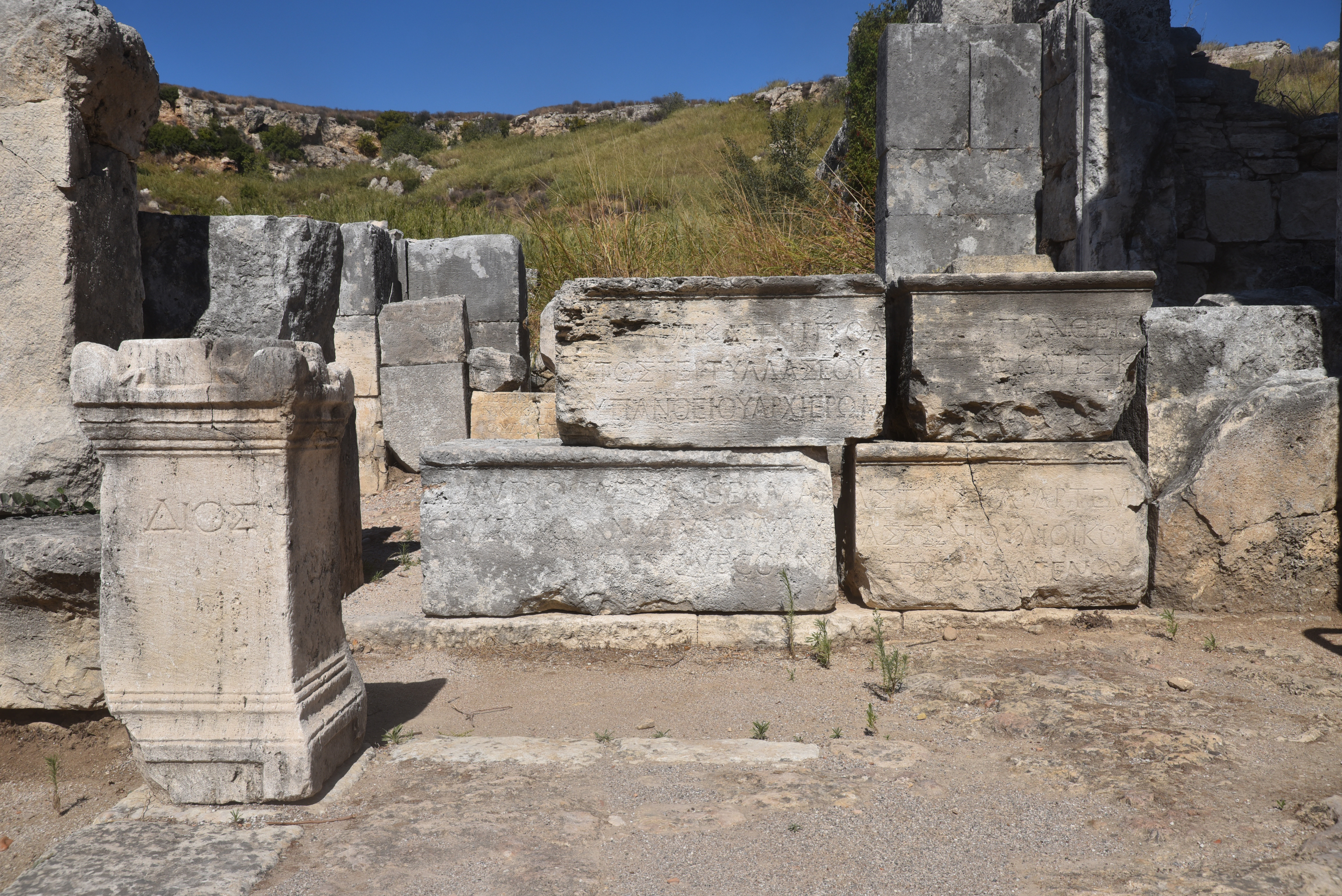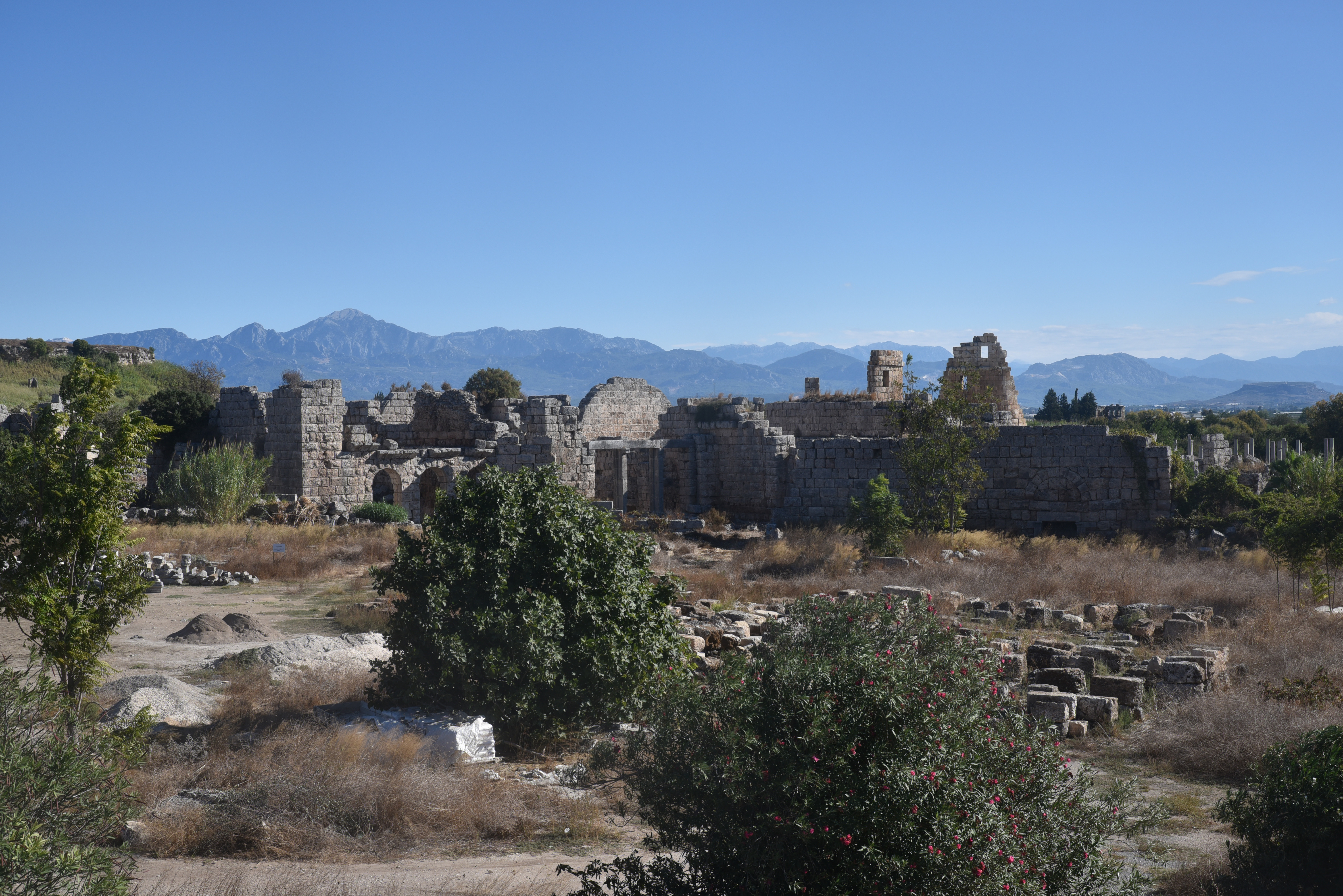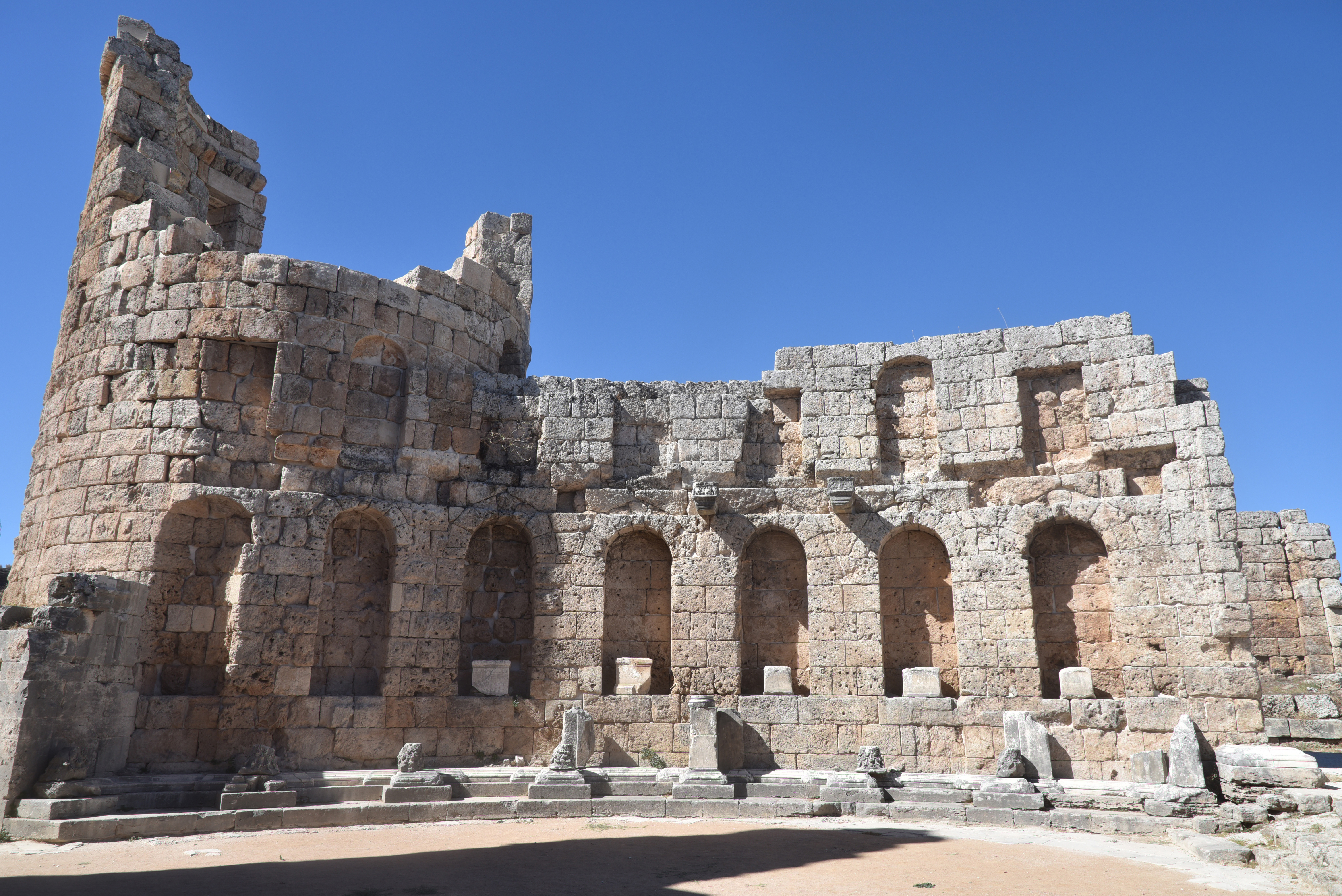 The North Nymphaeum, located at the northern end of the Cardo Maximus. It is dated to the Hadrianic period.Artist reconstruction of North Nymphaeum. It was a double-storied pi-shaped nymphaeum, with two projecting side wings fronted by columnar façades. Balage Balogh / archaeologyillustrated.comThe statuary display of the North Nymphaeum included two life-sized portraits of Hadrian, one cuirassed and the other heroically nude (see here).The Western Colonnaded Street (Decumanus Maximus), one of the city’s two main arteries.The Western Colonnaded Street, one of the city’s two main arteries, is a roughly 460-meter-long, 8-meter-wide thoroughfare that runs from the main street intersection toward the Palaestra and Northern Baths.Lined with Corinthian or Ionic columns, the porticoes of the Western Colonnaded Street provided pedestrians with shaded walkways and served as a location for shops.The Western Colonnaded Street (Decumanus Maximus) with the gymnasium-palaestra complex donated by C. Iulius Cornutus Bryoninus, Iulia Tertulla and Iulia Severa and dedicated to the Emperor Claudius. The building was erected of travertine on a square plan, with sides measuring 76 meters.The facade of the gymnasium-palaestra complex.Inscriptions along the Western Colonnaded Street (Decumanus Maximus).North West City Gate, Perge, the monumental entrance gate at the western end of the Decumanus Maximus.The Caracalla Nymphaeum, a semi-circular monumental fountain located at the end of the Decuman Maximus. It was constructed on a raised podium and embellished with statues of gods and goddesses, as well as of Emperor Caracalla.The Agora/Macellum, a square-shaped (51m x 51m) surrounded by colonnades and shops built in the 4th century AD.The northern side of the Agora/Macellum.The circular structure in the centre of the Agora/Macellum served as a fountain.