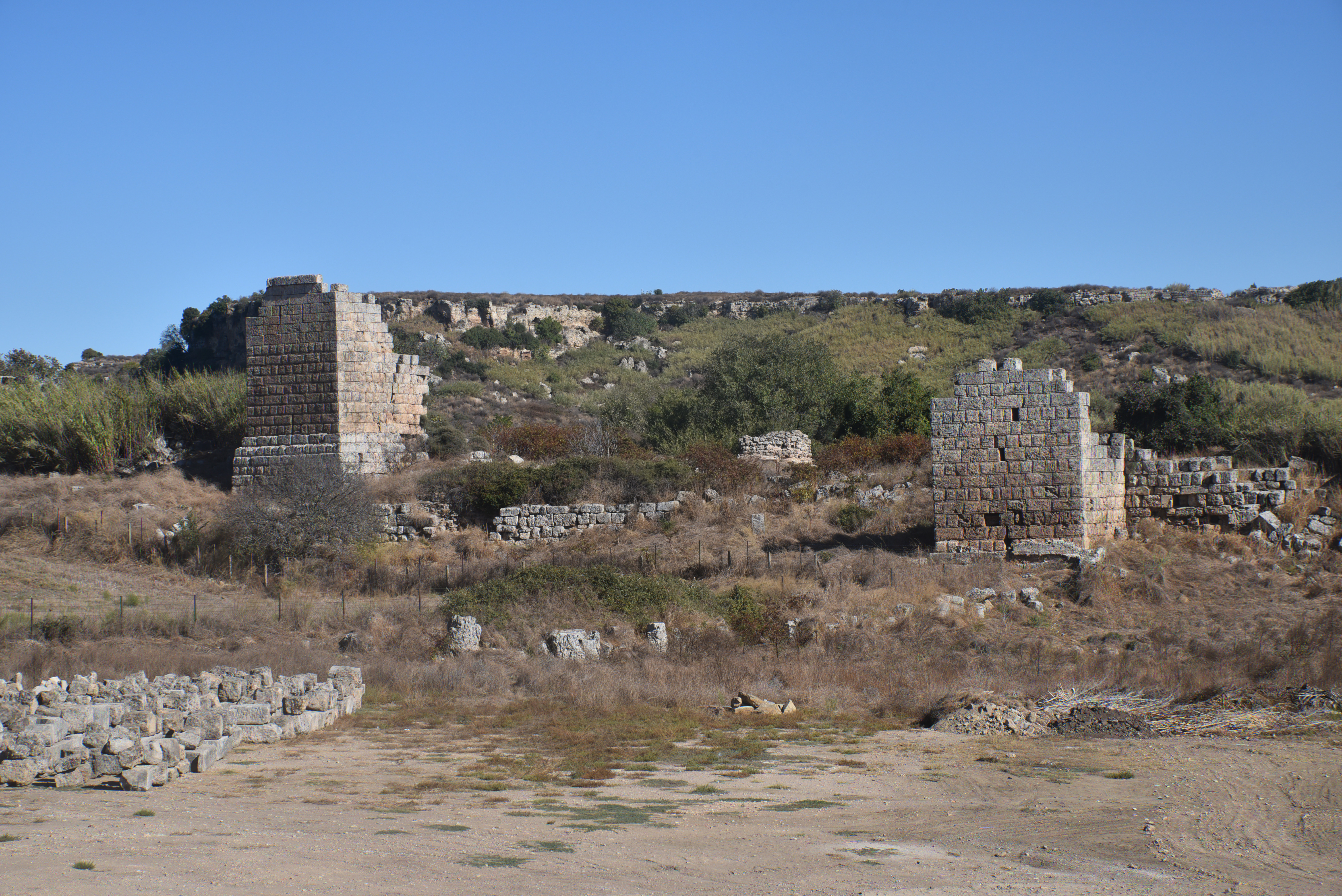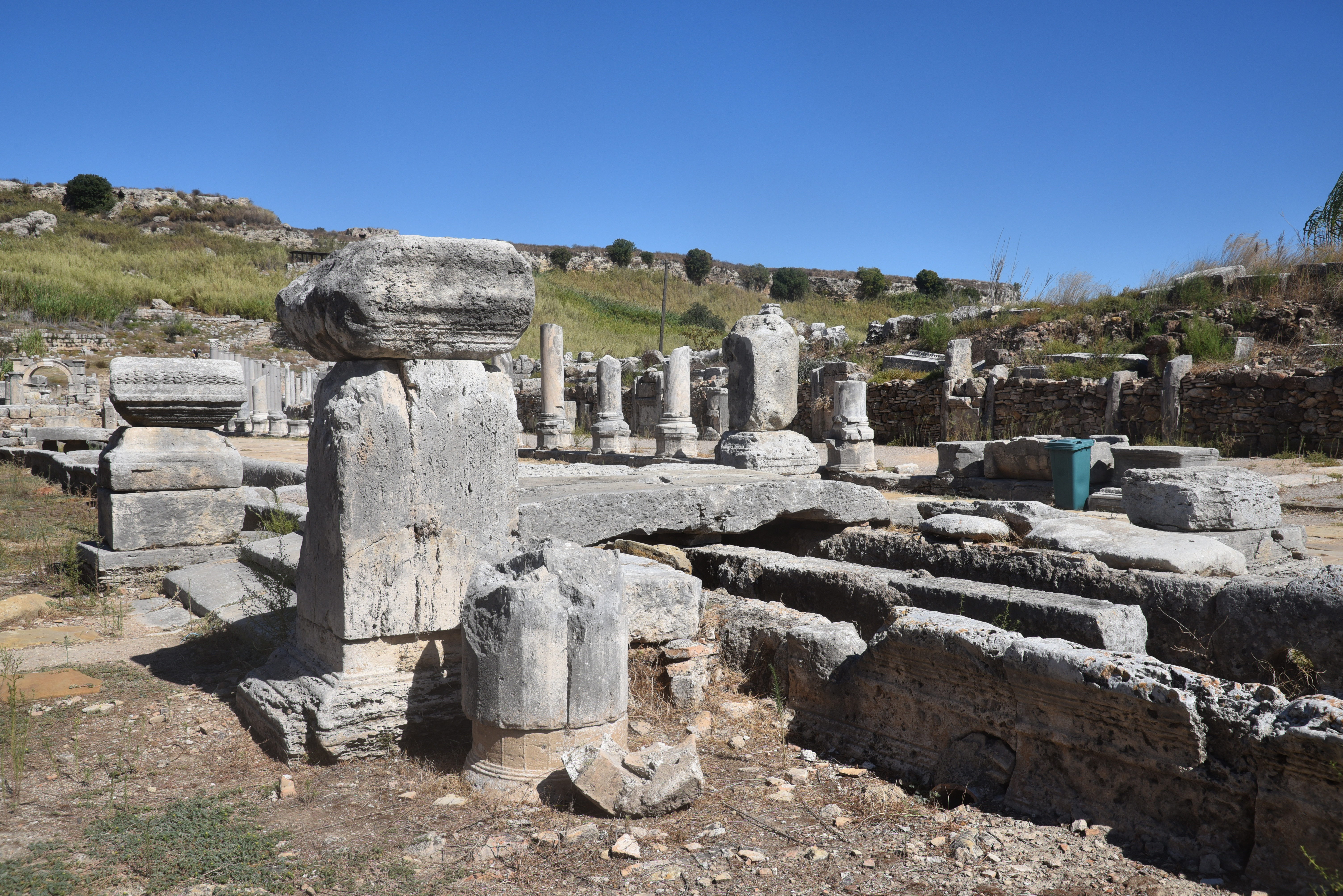 The northern section of the colonnaded Cardo Maximus and the Arch of Demetrius and Apollonius, a monumental Roman arch built around AD 80 and located at the intersection of the city’s two main colonnaded streets.The so-called Arch of Demetrius and Apollonius, a monumental Roman arch built around AD 80. This single-arched gate stood nearly 11 meters tall, but today only the square pylon legs remain.The northern section of the colonnaded Cardo Maximus.
