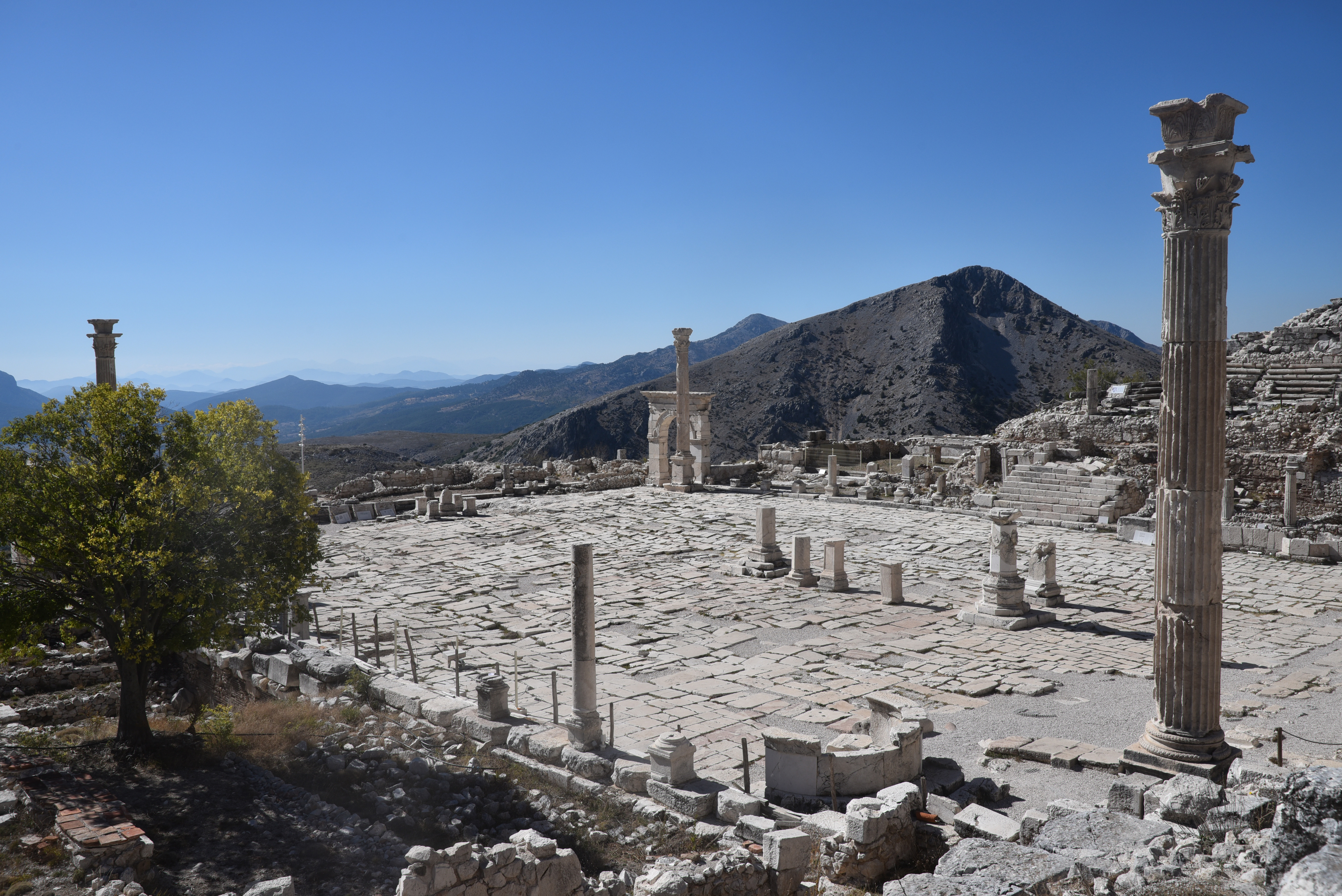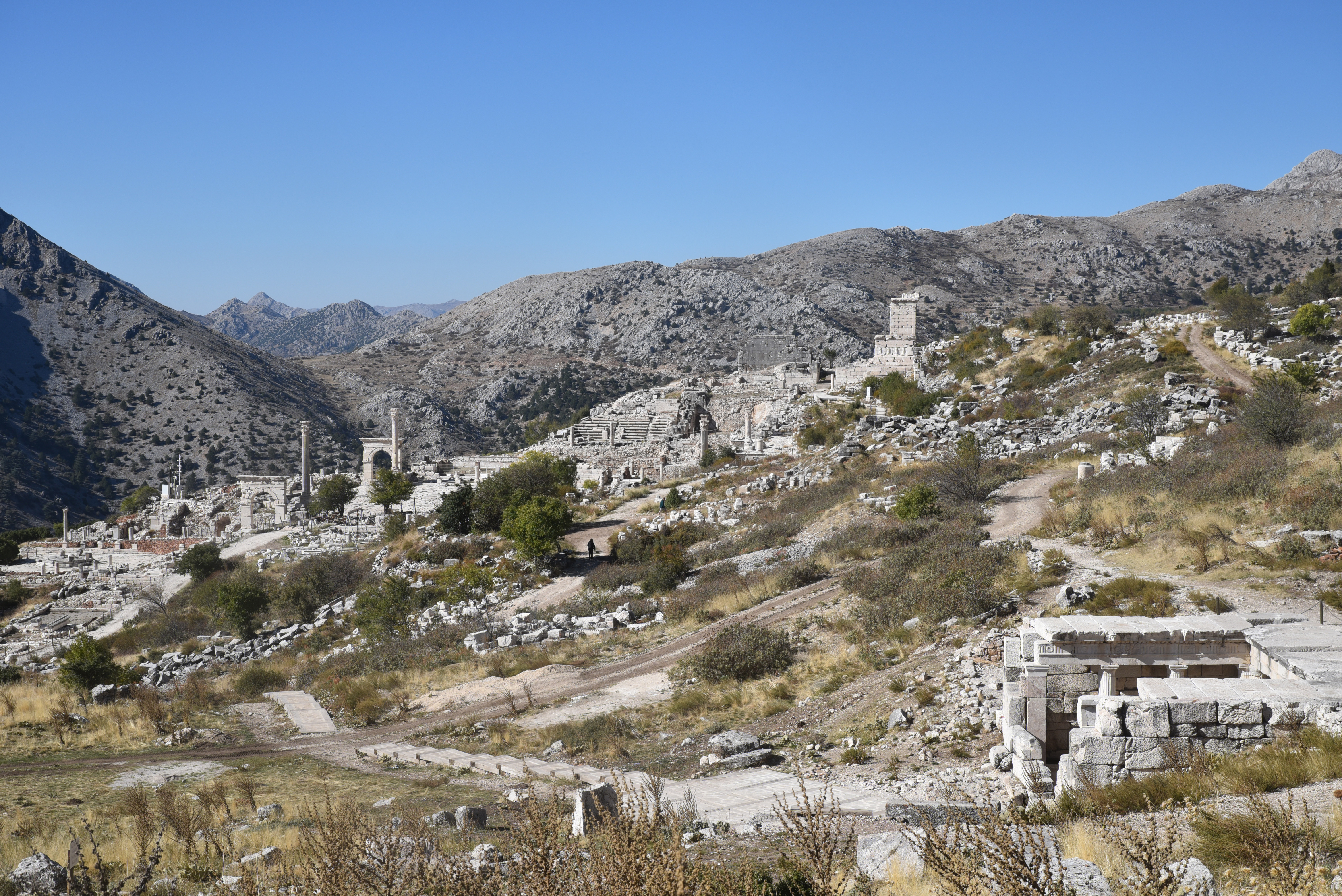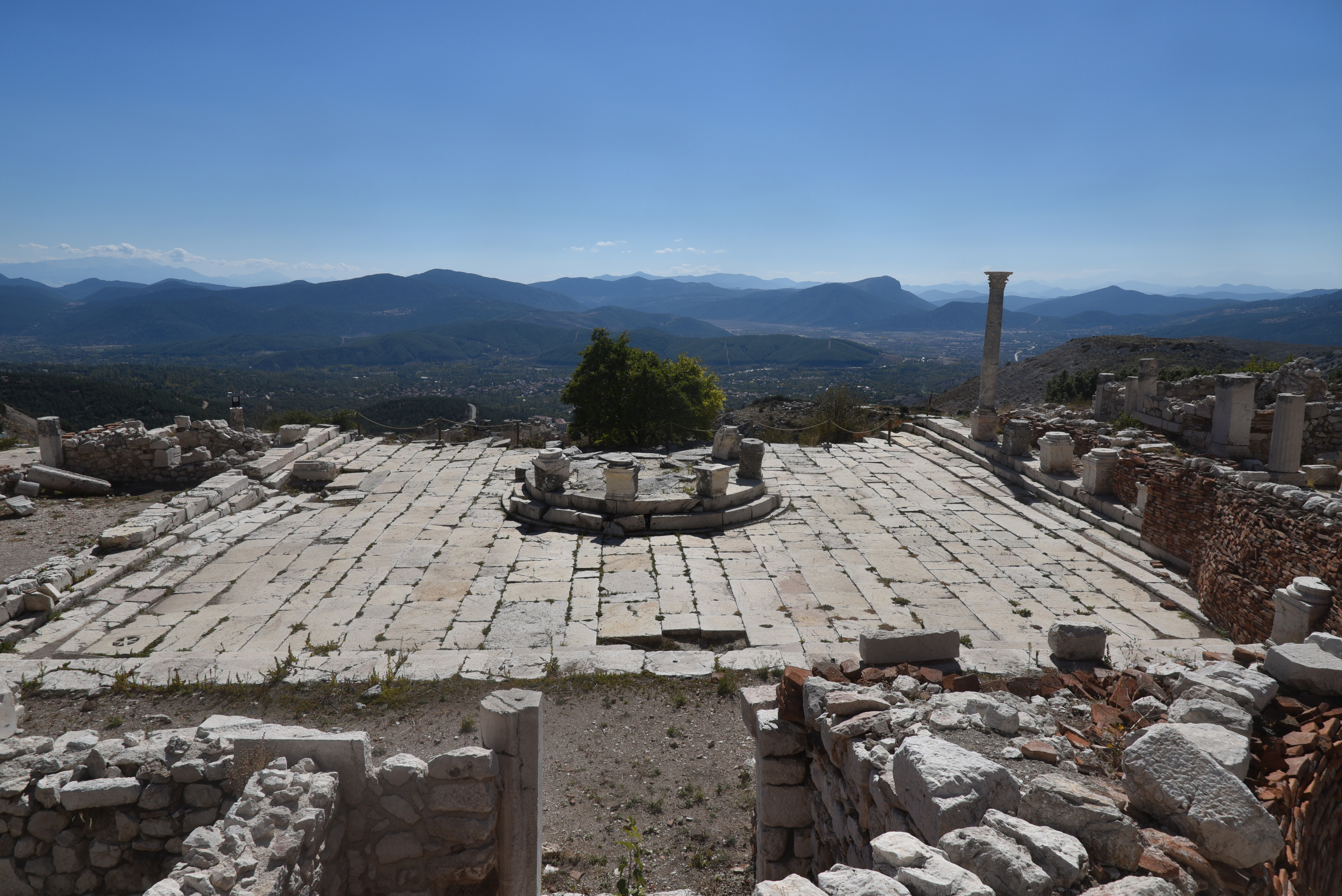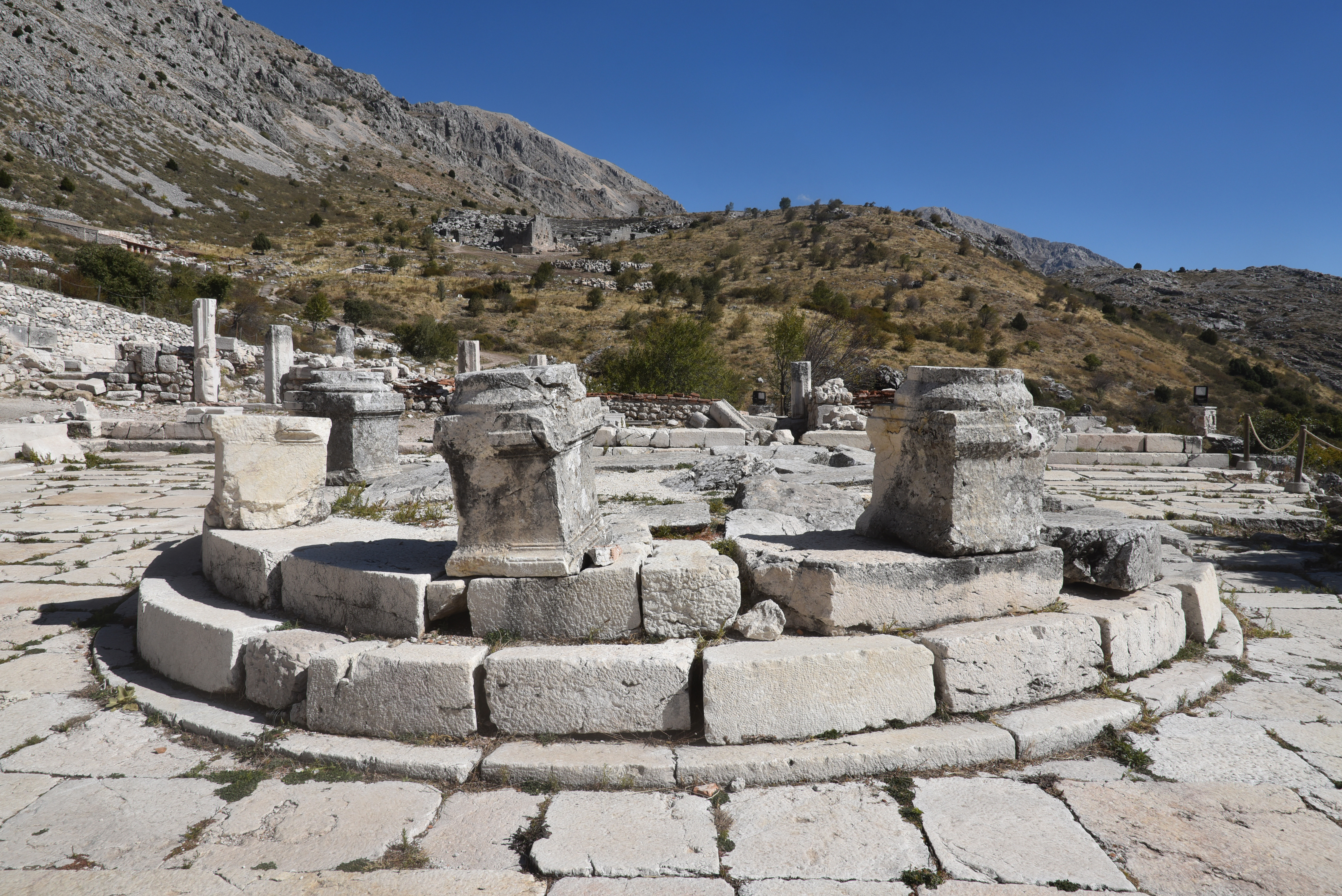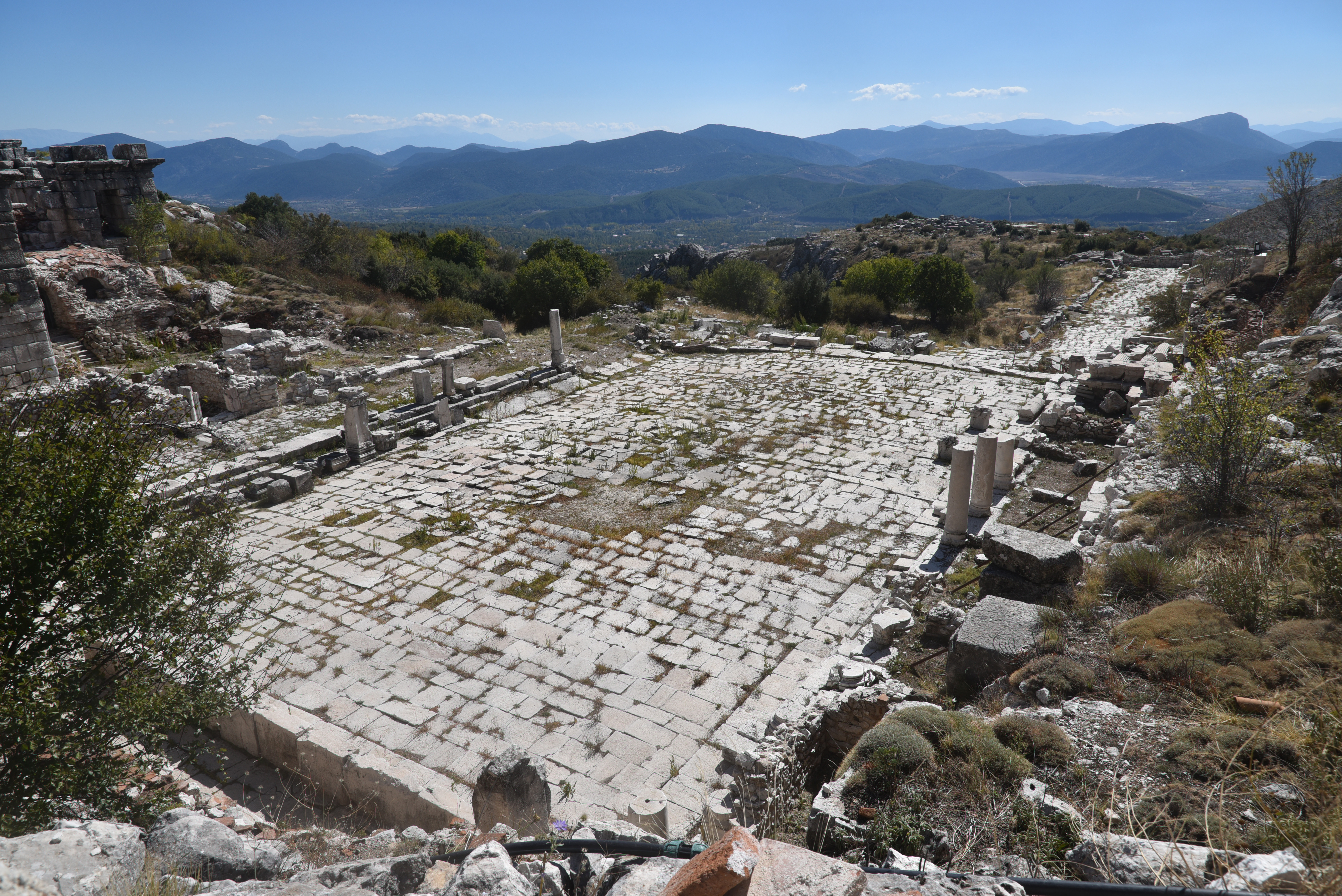 The Imperial Baths, a monumental bath complex covering c. 5,542 m² and built during the High Roman Imperial Period.The Imperial Baths included various sections, such as a large open-air palaestra, a “marble room,” and separate bathing circuits for men and women.The “marble room” of the Imperial Baths which originally displayed colossal acrolithic statues of Emperor Hadrian, his successors Antoninus Pius and Marcus Aurelius, and their spouses.The Lower Agora, constructed during the reign of Augustus and further monumentalized during late Flavian–Trajanic times.The Lower Agora covered approximately 1,550 square meters and was oriented differently from the Upper Agora, aligning with the rectangular street pattern of the new southern urban quarters.The square of the Lower Agora was adorned with a small Ionic “distyle in antis” temple dedicated to Apollo Klarios, which overlooked the agora from the west. This temple later became associated with the municipal emperor cult. A monumental fountain was added along the north side of the agora during Trajanic times, further enhancing its appearance.The Trajanic Nymphaeum, constructed during the reign of Emperor Trajan in the northern side of the Lower Agora.The Colonnaded Street connecting the Lower Agora with the South Gate of the city. It was constructed during the reign of Emperor Tiberius (AD 14–37).The Colonnaded Street was approximately 9.6–10 meters wide and 290 meters long. It was paved during the Julio-Claudian period, covering a dense water-supply network beneath it, flanked by porticoes and adorned with decorative monuments, including statues and inscriptions.The Lower City looking south towards Alexander’s Hill, the scene of the battle in 333 BC by which Alexander conquered the city. The landmark was named by the late Marc Waelkens.The ruins of the Temple of Antoninus Pius, constructed on a prominent location in the southeast part of the city, on a raised promontory. It was built to accommodate the cult of the emperor.The Temple of Antoninus Pius was of the Corinthian peripteral type, characterised by a rectangular layout surrounded by a colonnade of Corinthian columns.Alexander’s Hill. The Roman historian Arrian recorded that Alexander, in 333 BC, took Sagalassos by storm after breaking local resistance on a steep, conical hill south of the settlement (Anabasis, I.28.2).The southern necropolis.