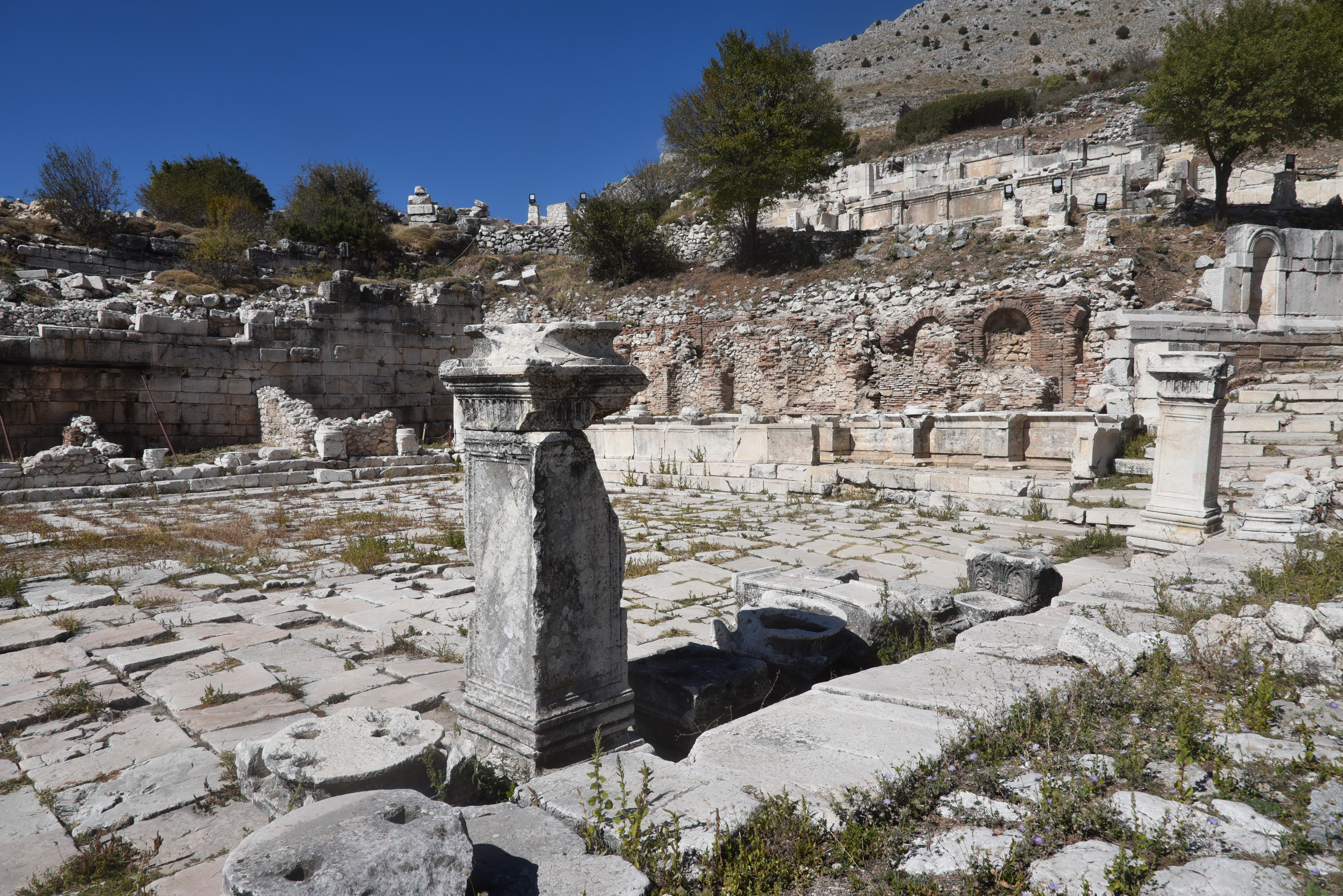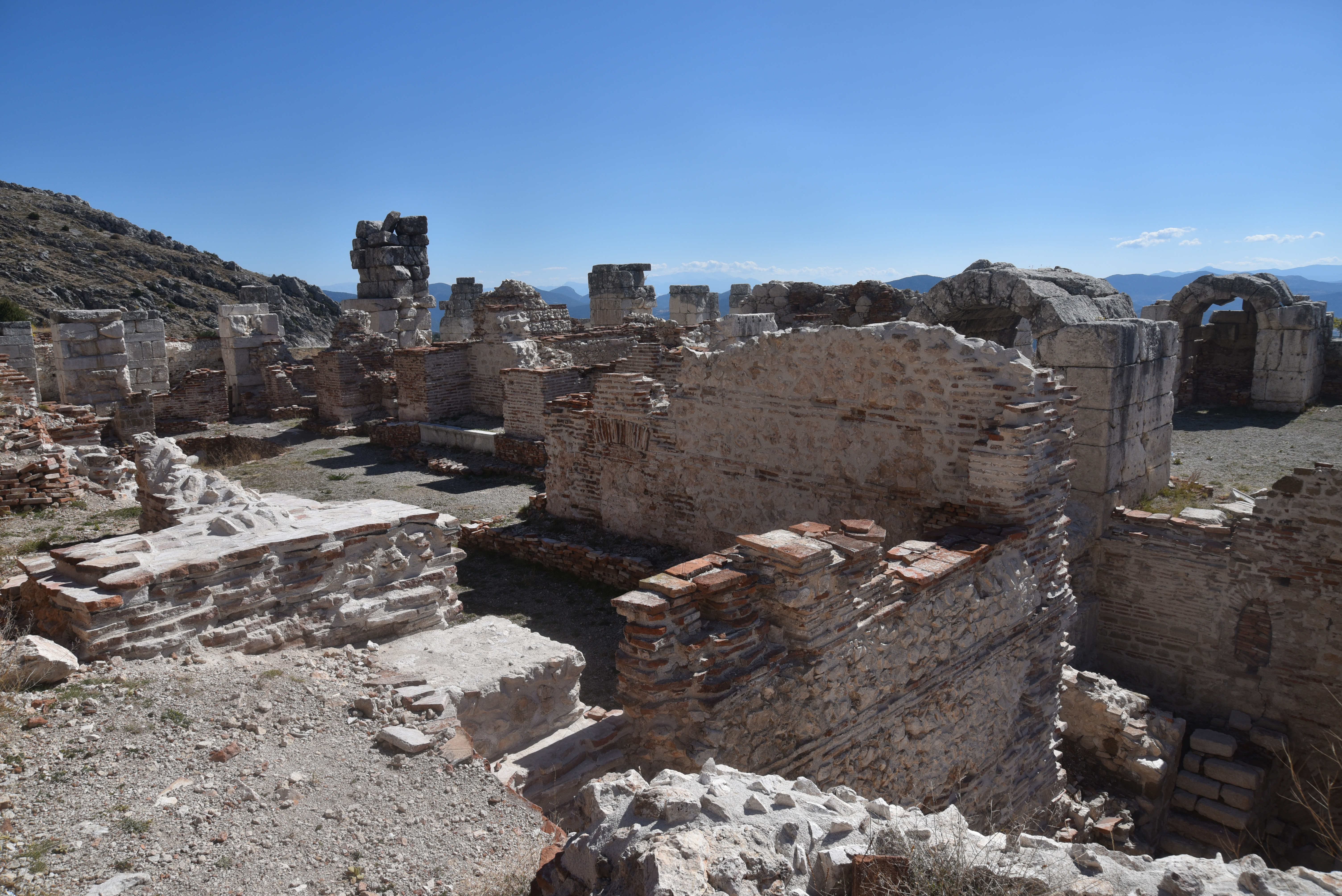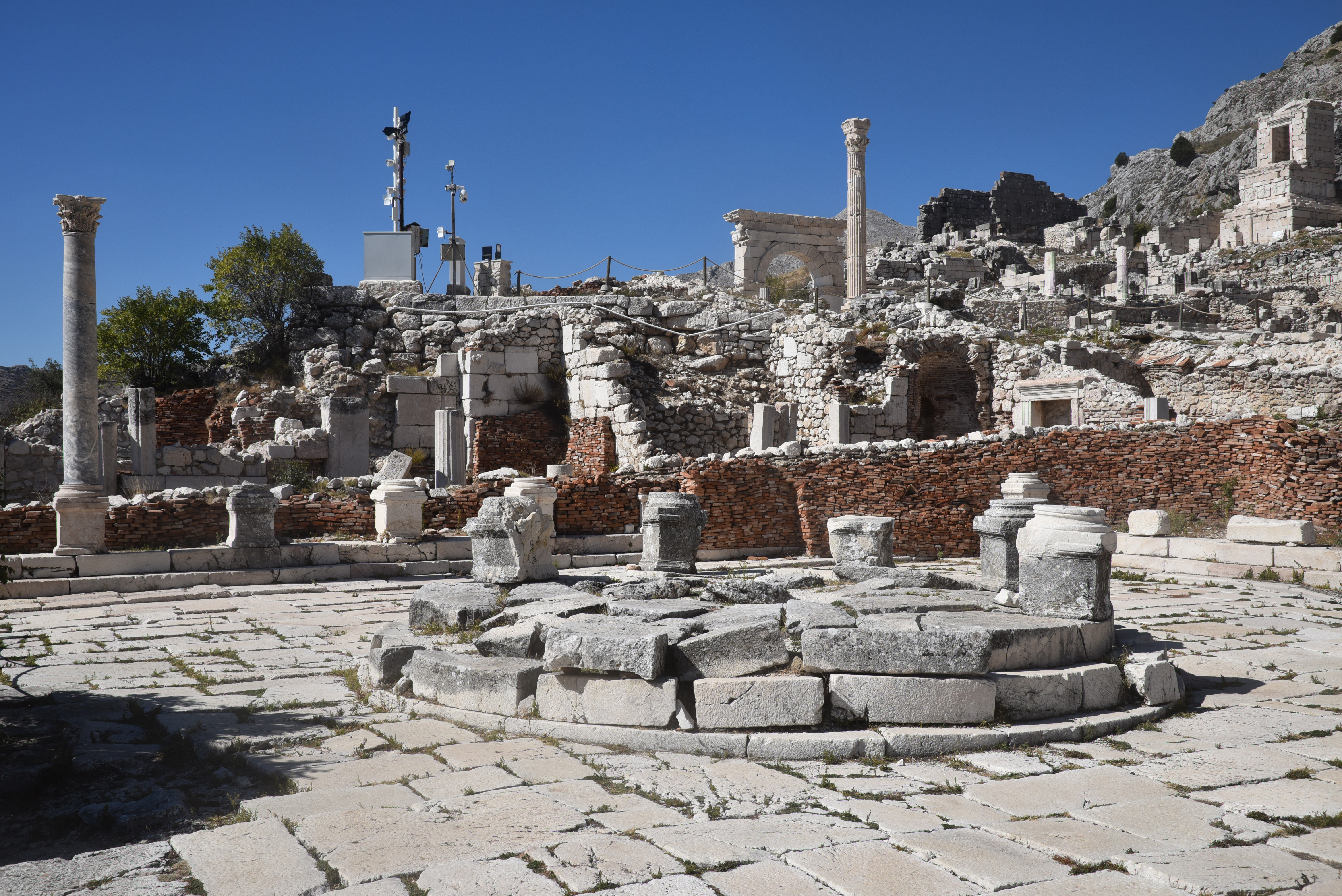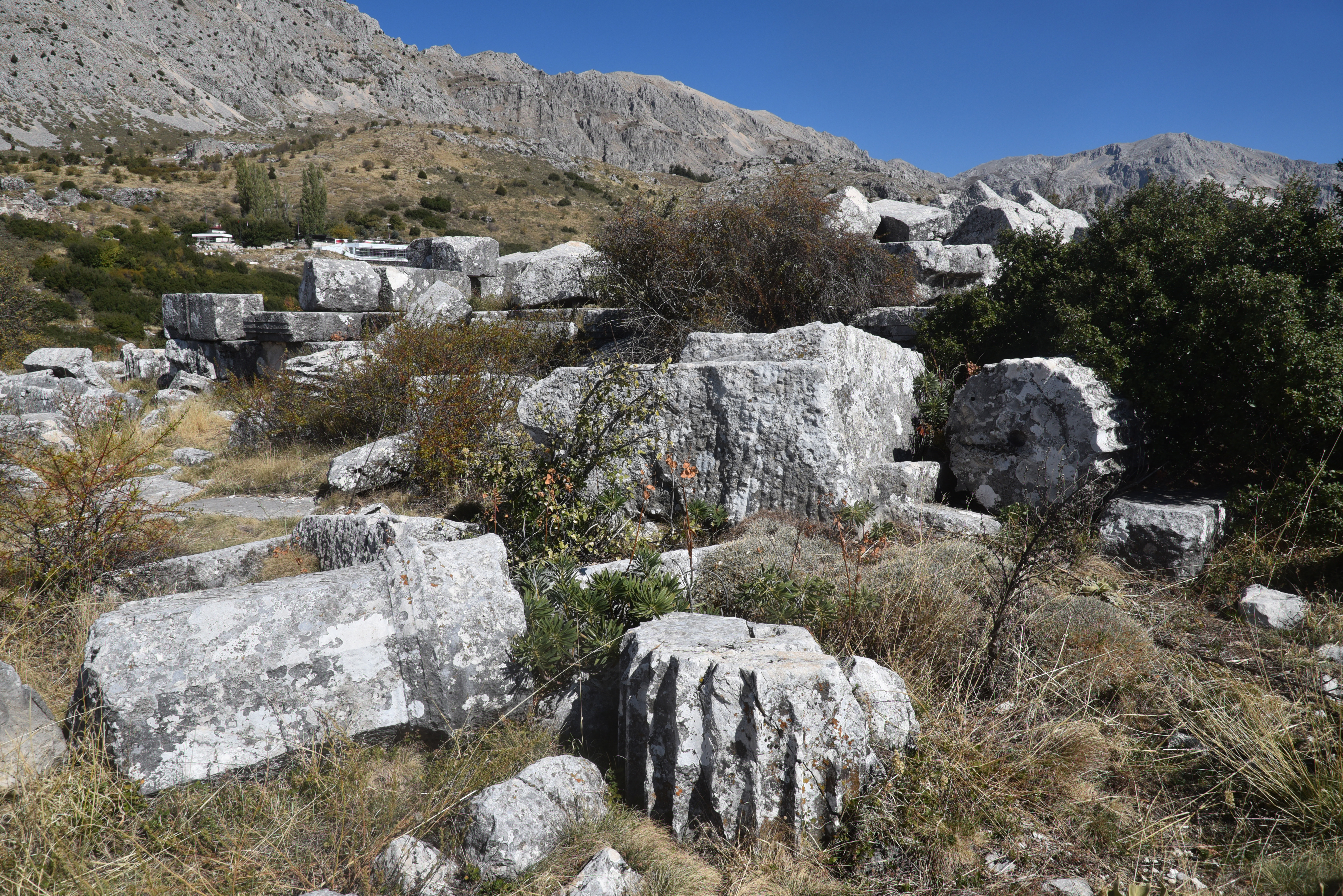 The Imperial Baths, a monumental bath complex covering c. 5,542 m² and built during the High Roman Imperial Period.The Imperial Baths included various sections, such as a large open-air palaestra, a “marble room,” and separate bathing circuits for men and women.The “marble room” of the Imperial Baths which originally displayed colossal acrolithic statues of Emperor Hadrian, his successors Antoninus Pius and Marcus Aurelius, and their spouses.The Lower Agora, constructed during the reign of Augustus and further monumentalized during late Flavian–Trajanic times.The Lower Agora covered approximately 1,550 square meters and was oriented differently from the Upper Agora, aligning with the rectangular street pattern of the new southern urban quarters.The square of the Lower Agora was adorned with a small Ionic “distyle in antis” temple dedicated to Apollo Klarios, which overlooked the agora from the west. This temple later became associated with the municipal emperor cult. A monumental fountain was added along the north side of the agora during Trajanic times, further enhancing its appearance.The Trajanic Nymphaeum, constructed during the reign of Emperor Trajan in the northern side of the Lower Agora.The Colonnaded Street connecting the Lower Agora with the South Gate of the city. It was constructed during the reign of Emperor Tiberius (AD 14–37).The Colonnaded Street was approximately 9.6–10 meters wide and 290 meters long. It was paved during the Julio-Claudian period, covering a dense water-supply network beneath it, flanked by porticoes and adorned with decorative monuments, including statues and inscriptions.The Lower City looking south towards Alexander’s Hill, the scene of the battle in 333 BC by which Alexander conquered the city. The landmark was named by the late Marc Waelkens.The ruins of the Temple of Antoninus Pius, constructed on a prominent location in the southeast part of the city, on a raised promontory. It was built to accommodate the cult of the emperor.The Temple of Antoninus Pius was of the Corinthian peripteral type, characterised by a rectangular layout surrounded by a colonnade of Corinthian columns.Alexander’s Hill. The Roman historian Arrian recorded that Alexander, in 333 BC, took Sagalassos by storm after breaking local resistance on a steep, conical hill south of the settlement (Anabasis, I.28.2).The southern necropolis.