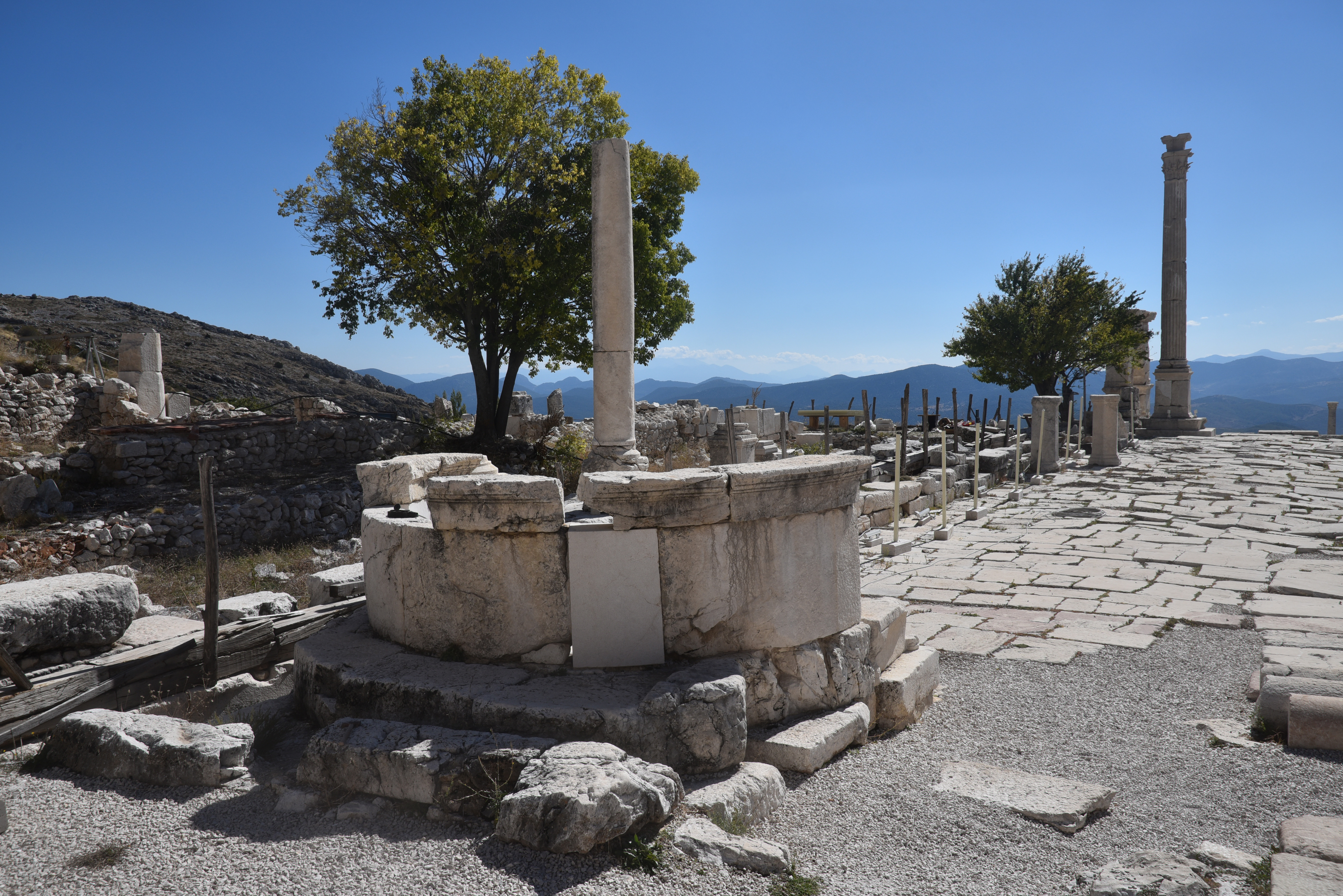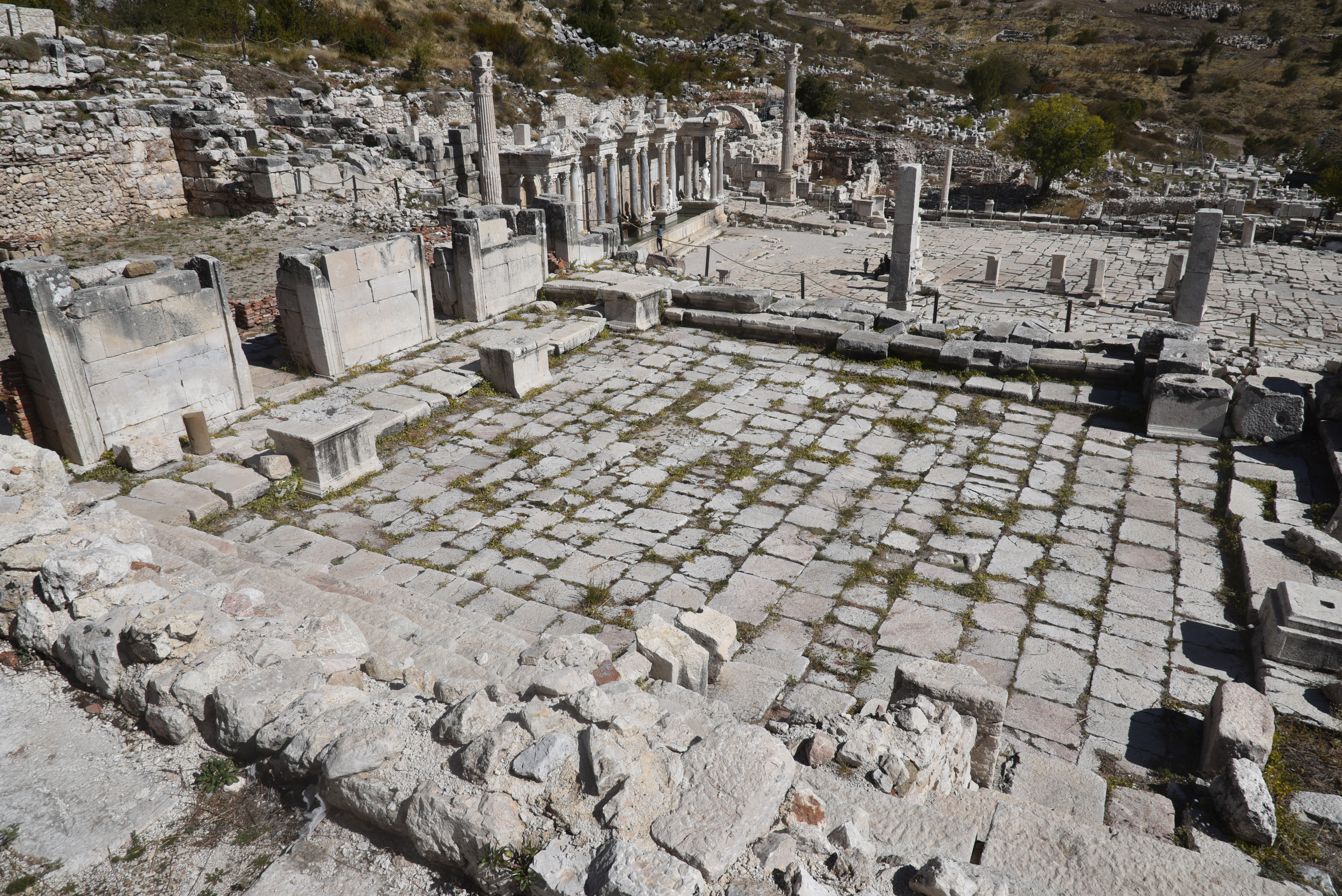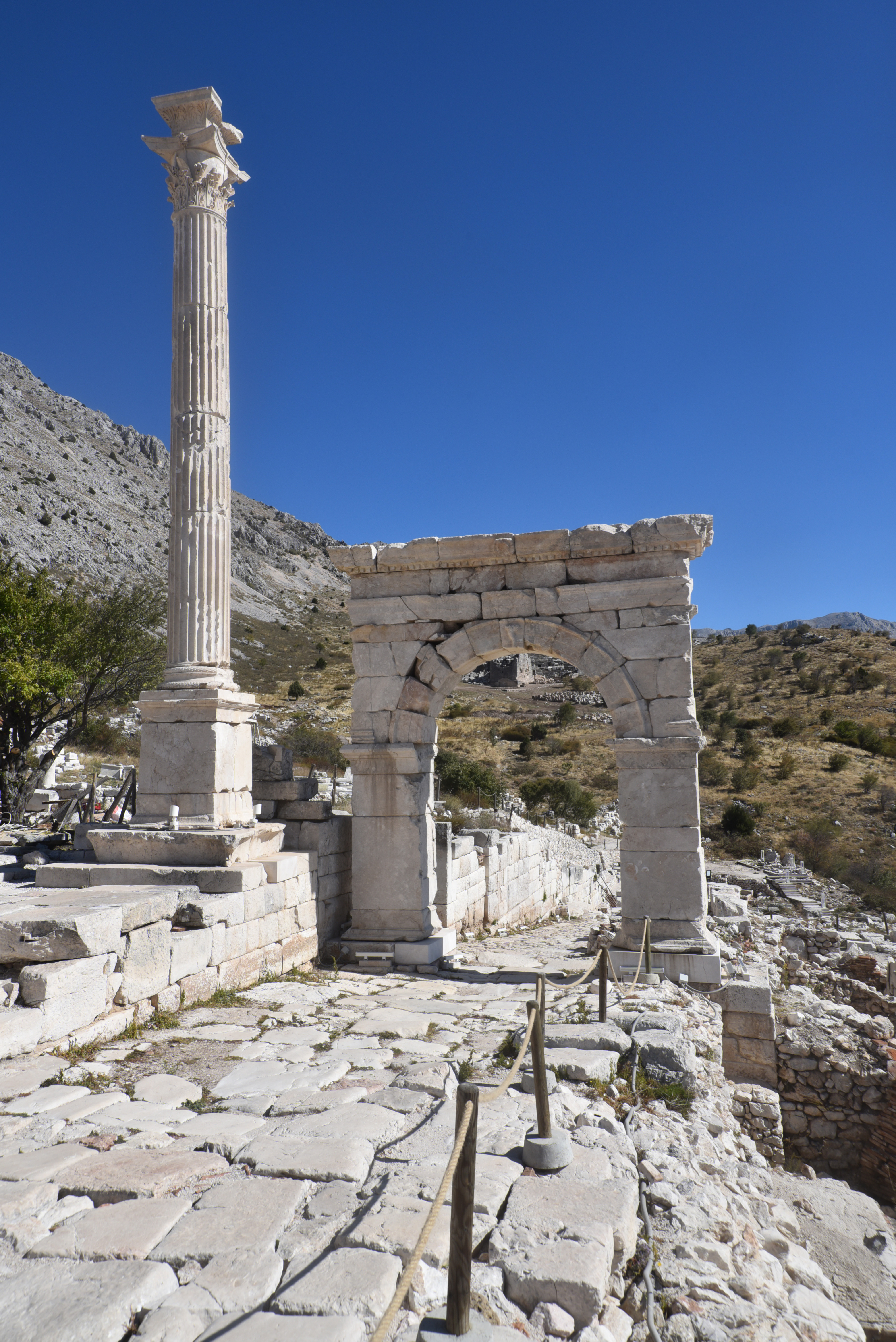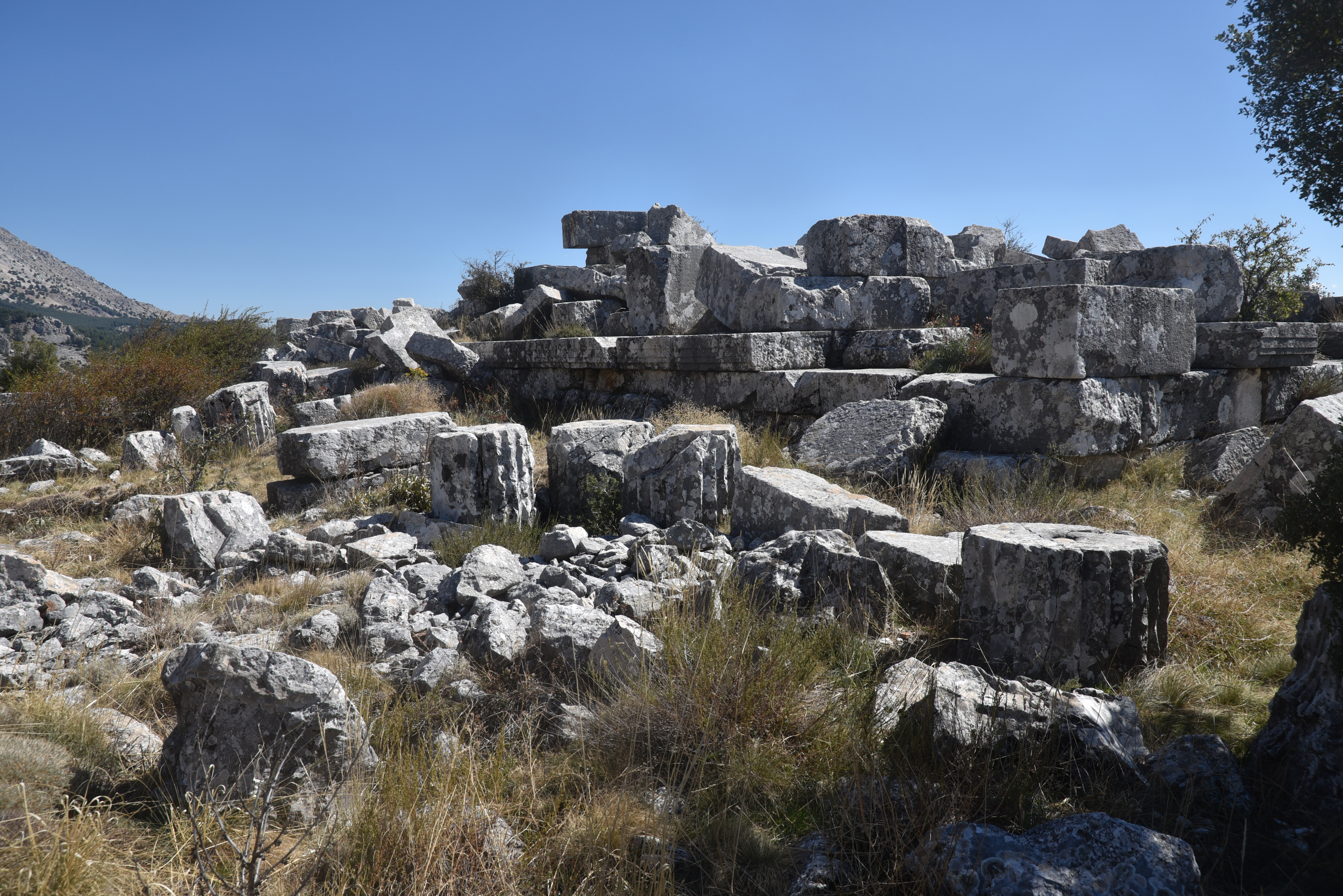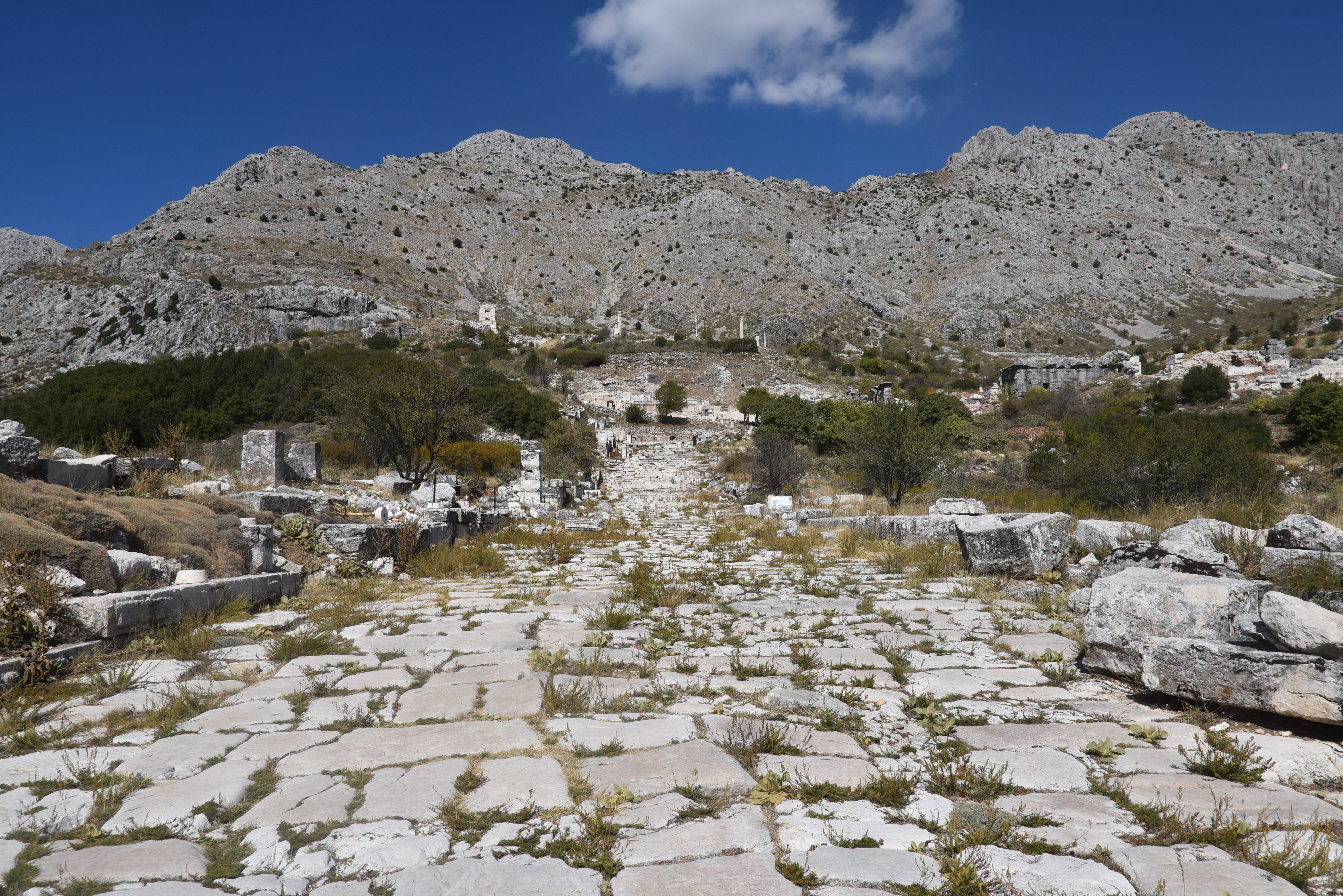 The Imperial Baths, a monumental bath complex covering c. 5,542 m² and built during the High Roman Imperial Period.The Imperial Baths included various sections, such as a large open-air palaestra, a “marble room,” and separate bathing circuits for men and women.The “marble room” of the Imperial Baths which originally displayed colossal acrolithic statues of Emperor Hadrian, his successors Antoninus Pius and Marcus Aurelius, and their spouses.The Lower Agora, constructed during the reign of Augustus and further monumentalized during late Flavian–Trajanic times.The Lower Agora covered approximately 1,550 square meters and was oriented differently from the Upper Agora, aligning with the rectangular street pattern of the new southern urban quarters.The square of the Lower Agora was adorned with a small Ionic “distyle in antis” temple dedicated to Apollo Klarios, which overlooked the agora from the west. This temple later became associated with the municipal emperor cult. A monumental fountain was added along the north side of the agora during Trajanic times, further enhancing its appearance.The Trajanic Nymphaeum, constructed during the reign of Emperor Trajan in the northern side of the Lower Agora.The Colonnaded Street connecting the Lower Agora with the South Gate of the city. It was constructed during the reign of Emperor Tiberius (AD 14–37).The Colonnaded Street was approximately 9.6–10 meters wide and 290 meters long. It was paved during the Julio-Claudian period, covering a dense water-supply network beneath it, flanked by porticoes and adorned with decorative monuments, including statues and inscriptions.The Lower City looking south towards Alexander’s Hill, the scene of the battle in 333 BC by which Alexander conquered the city. The landmark was named by the late Marc Waelkens.The ruins of the Temple of Antoninus Pius, constructed on a prominent location in the southeast part of the city, on a raised promontory. It was built to accommodate the cult of the emperor.The Temple of Antoninus Pius was of the Corinthian peripteral type, characterised by a rectangular layout surrounded by a colonnade of Corinthian columns.Alexander’s Hill. The Roman historian Arrian recorded that Alexander, in 333 BC, took Sagalassos by storm after breaking local resistance on a steep, conical hill south of the settlement (Anabasis, I.28.2).The southern necropolis.