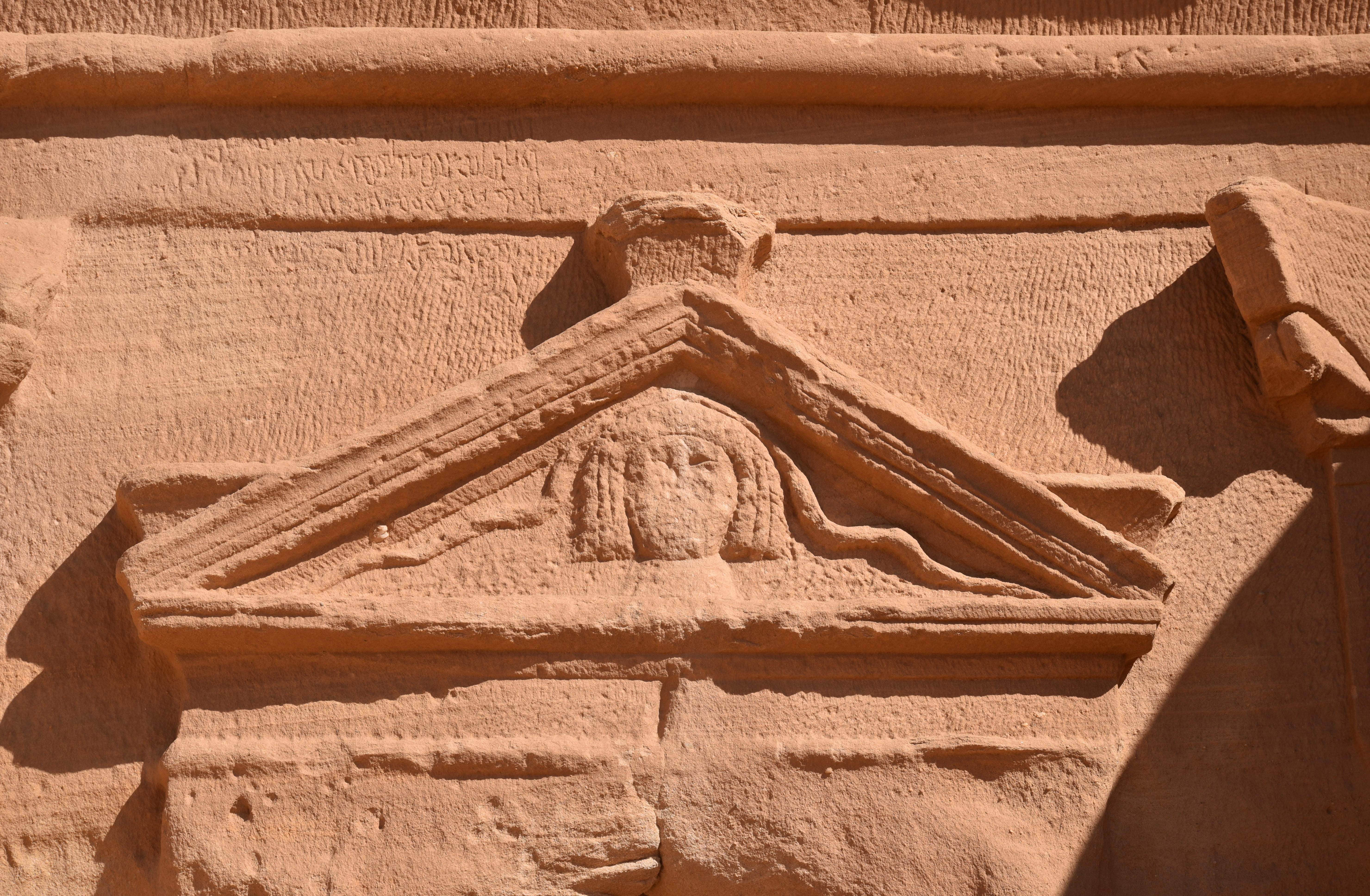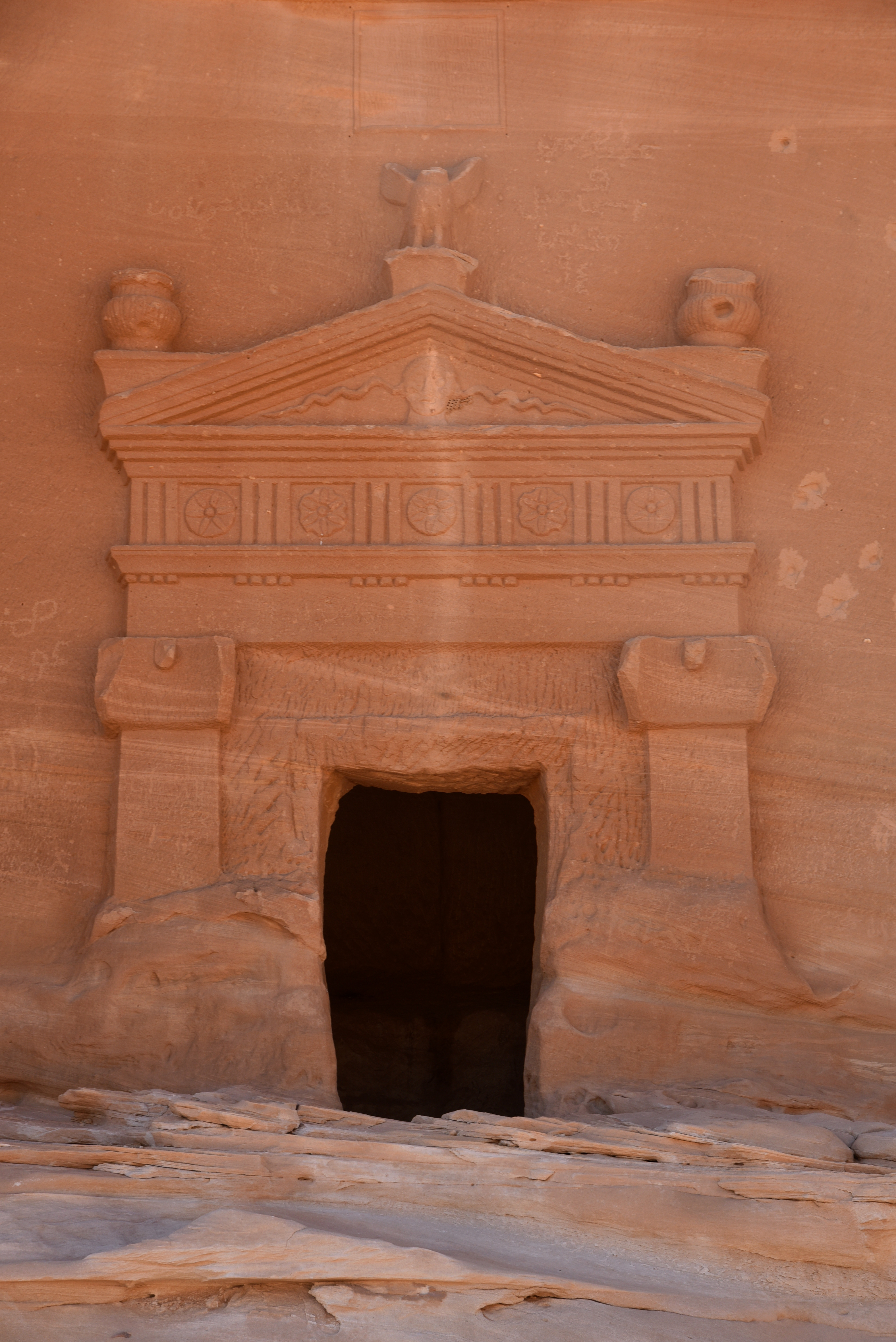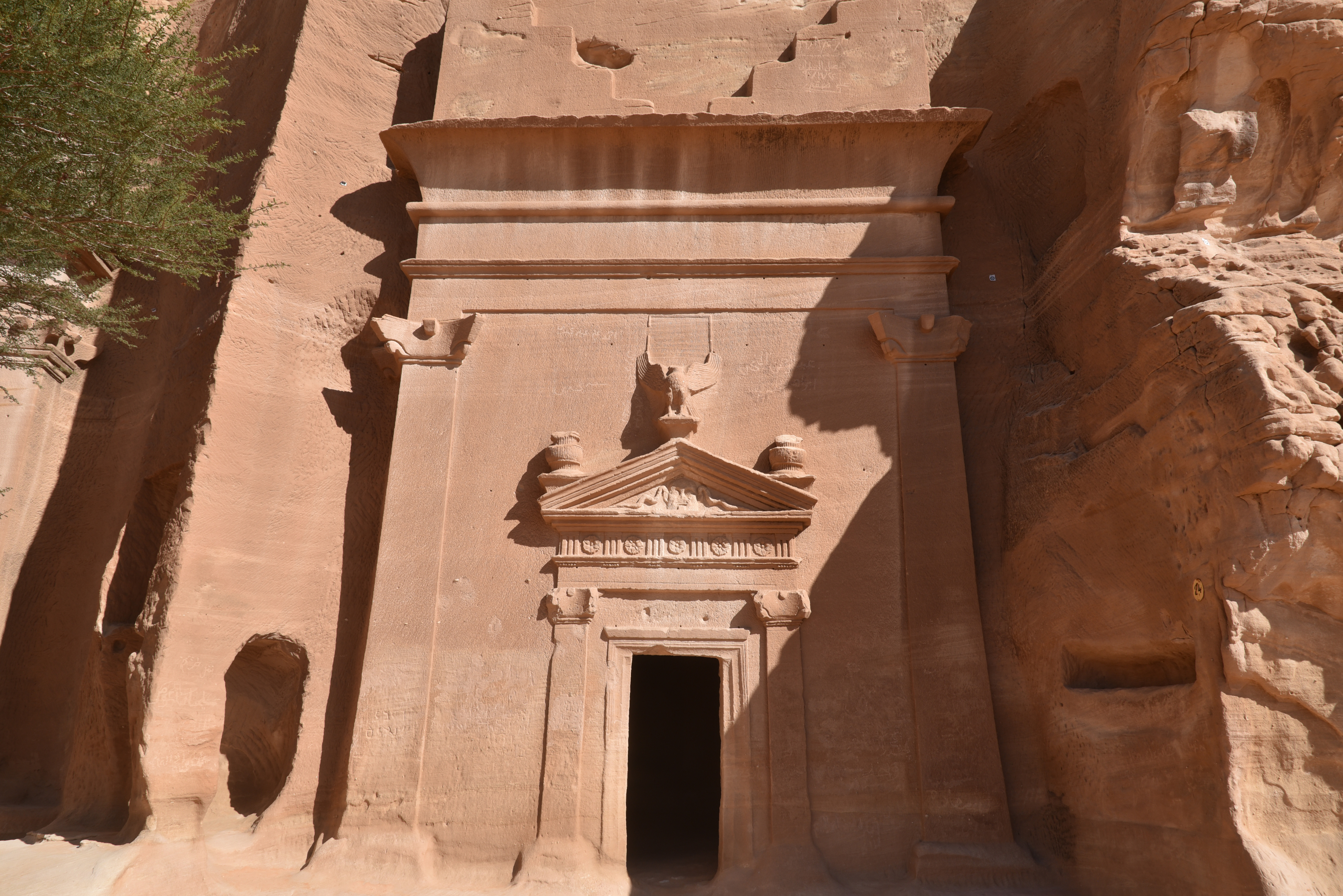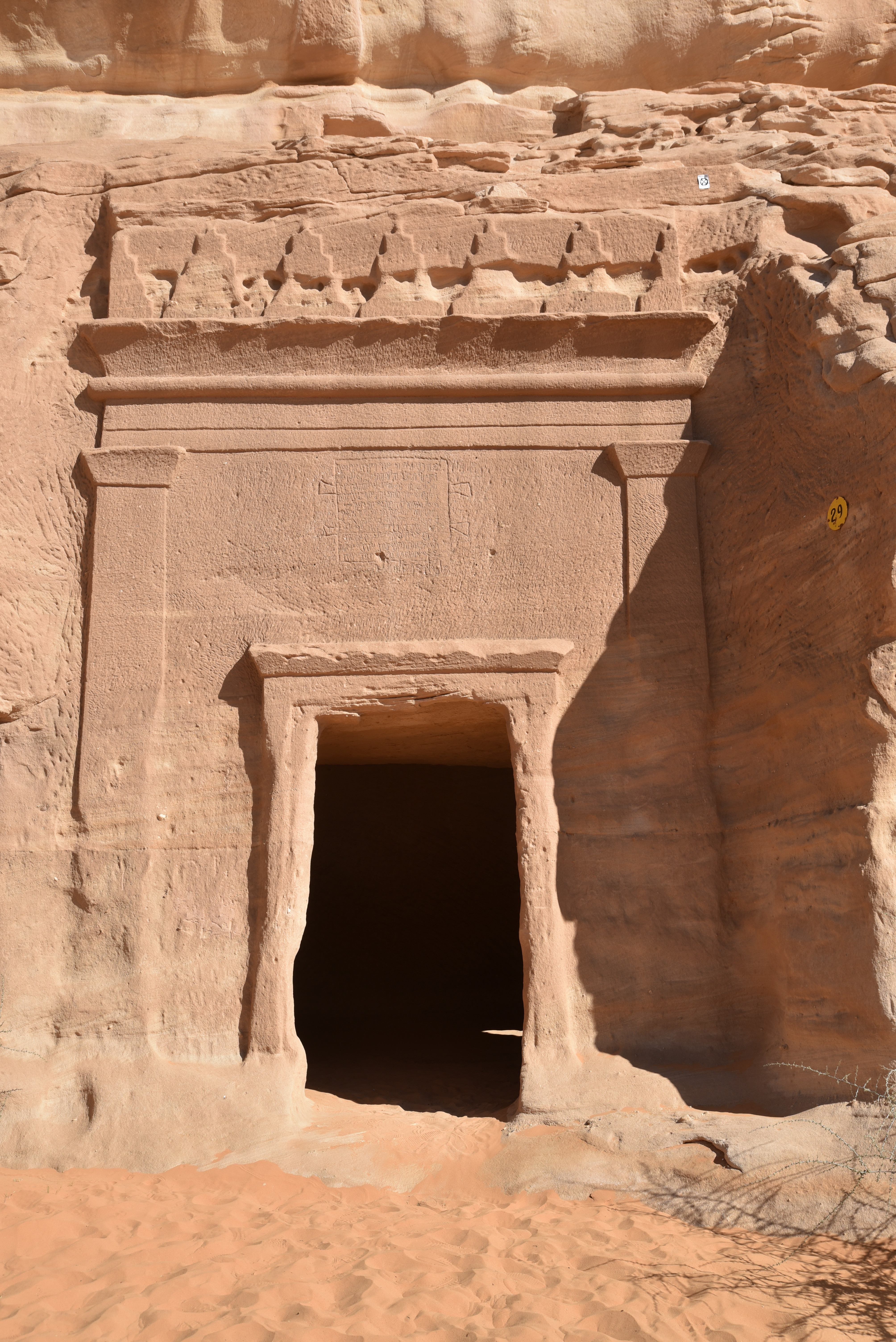 - Proto-Hegra Type 2 (approx. 12 tombs): Similar to Type 1 but includes an entablature enriched by a frieze.