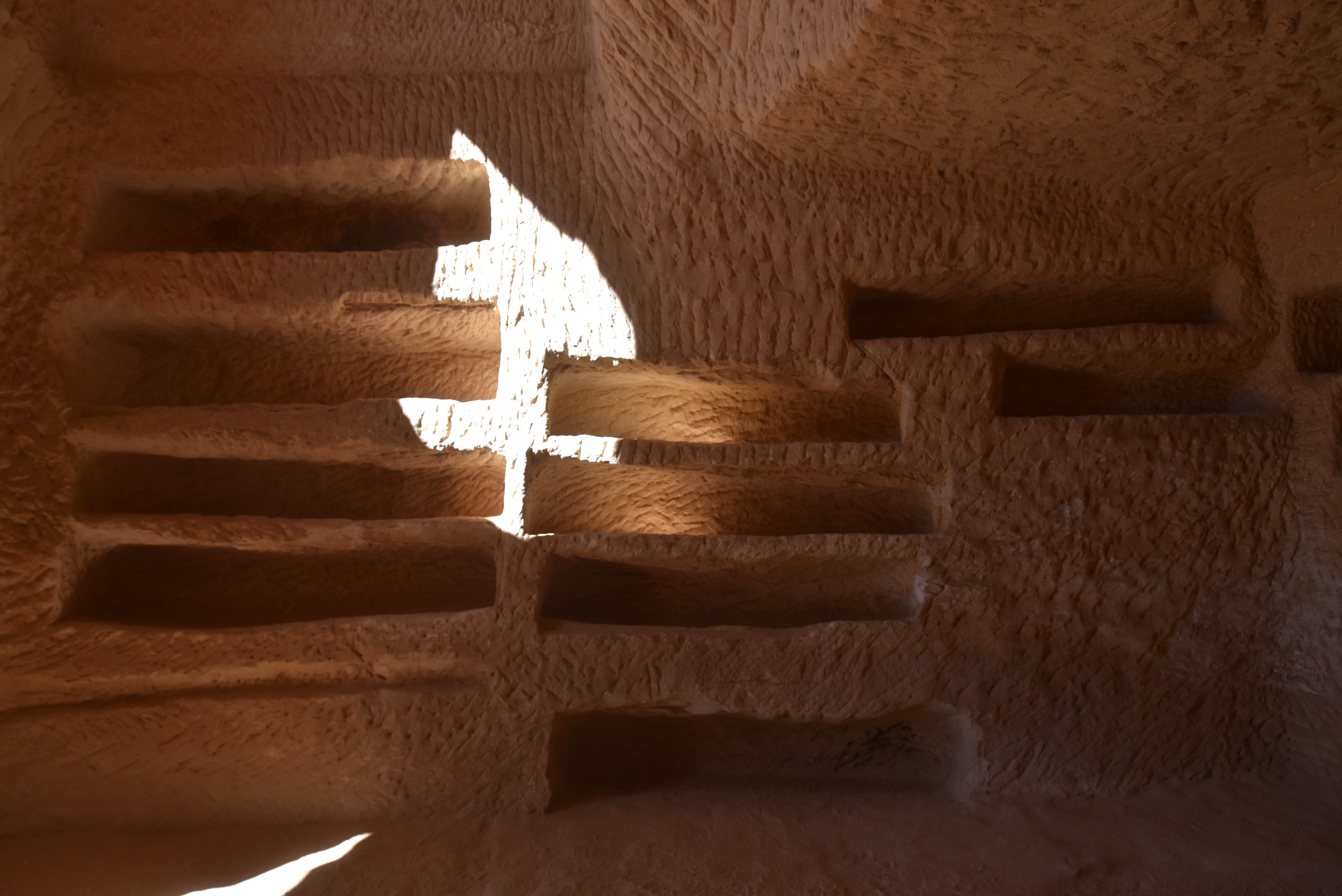 The Jabal al-Ahmar Necropolis consists of twenty-two tombs, numbered from IGN111 to IGN130.1, spread across two sectors and divided into three rocky outcrops, some of which have recently been uncovered. The remains of a 2,000-year-old Nabatean woman named Hinat were excavated from one of these tombs (read more here).