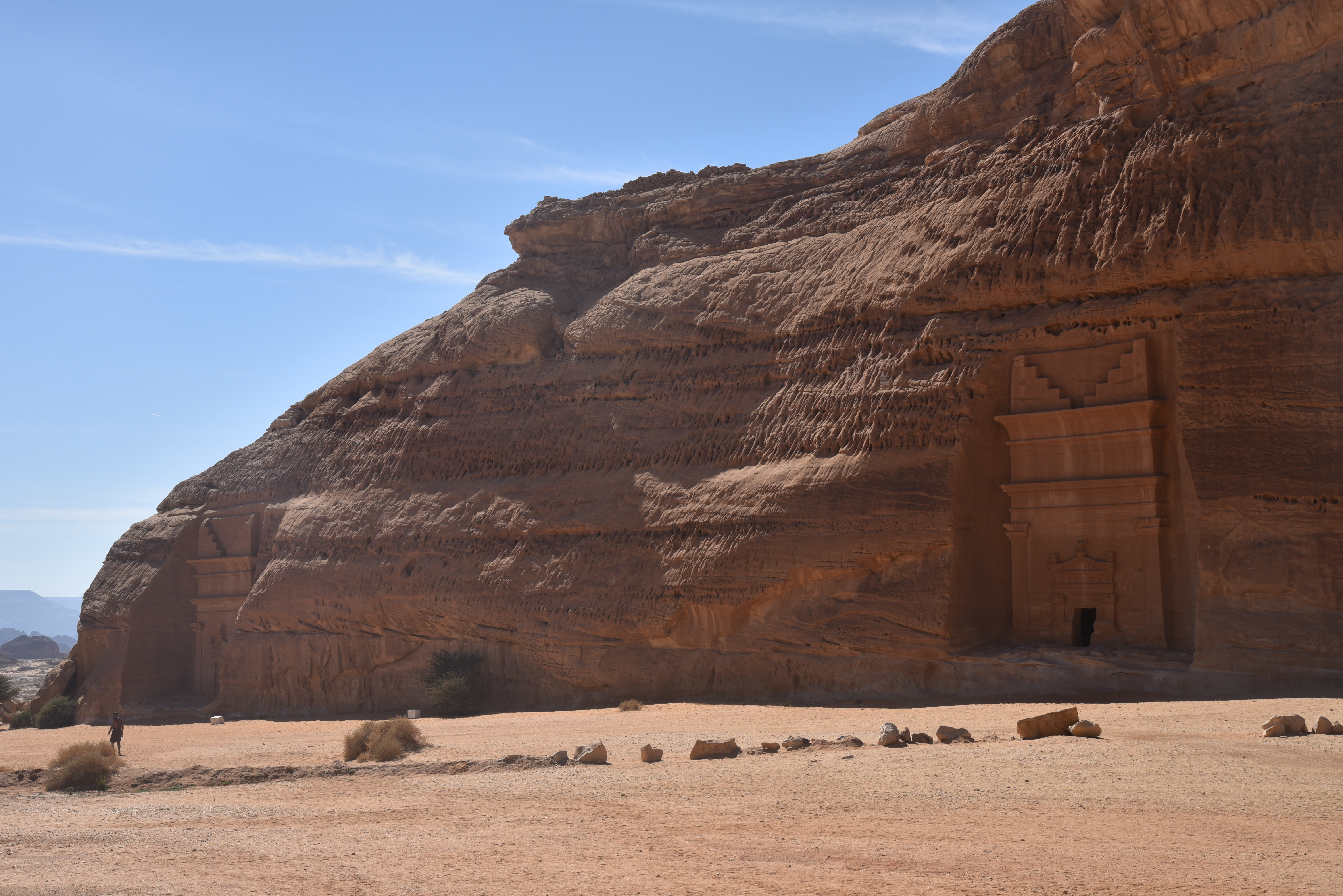 Hegra, also known as Al-Hijr or Mada’in Salih, is one of the most significant archaeological sites in northwestern Saudi Arabia. It is located north of AlUla and the ancient capital of the Dadanite and Lihyanite Kingdoms at Dadan. Surrounded by vast desert plains and impressive sandstone cliffs, Hegra is famous for its monumental Nabataean tombs, which are intricately carved into the rock. Once a thriving city during the Nabataean Kingdom, Hegra was the second most important city after Petra. The Nabataeans, originally a nomadic Arab tribe, flourished between the 4th century BC and the 2nd century AD by controlling trade routes that connected southern Arabia to the Mediterranean.