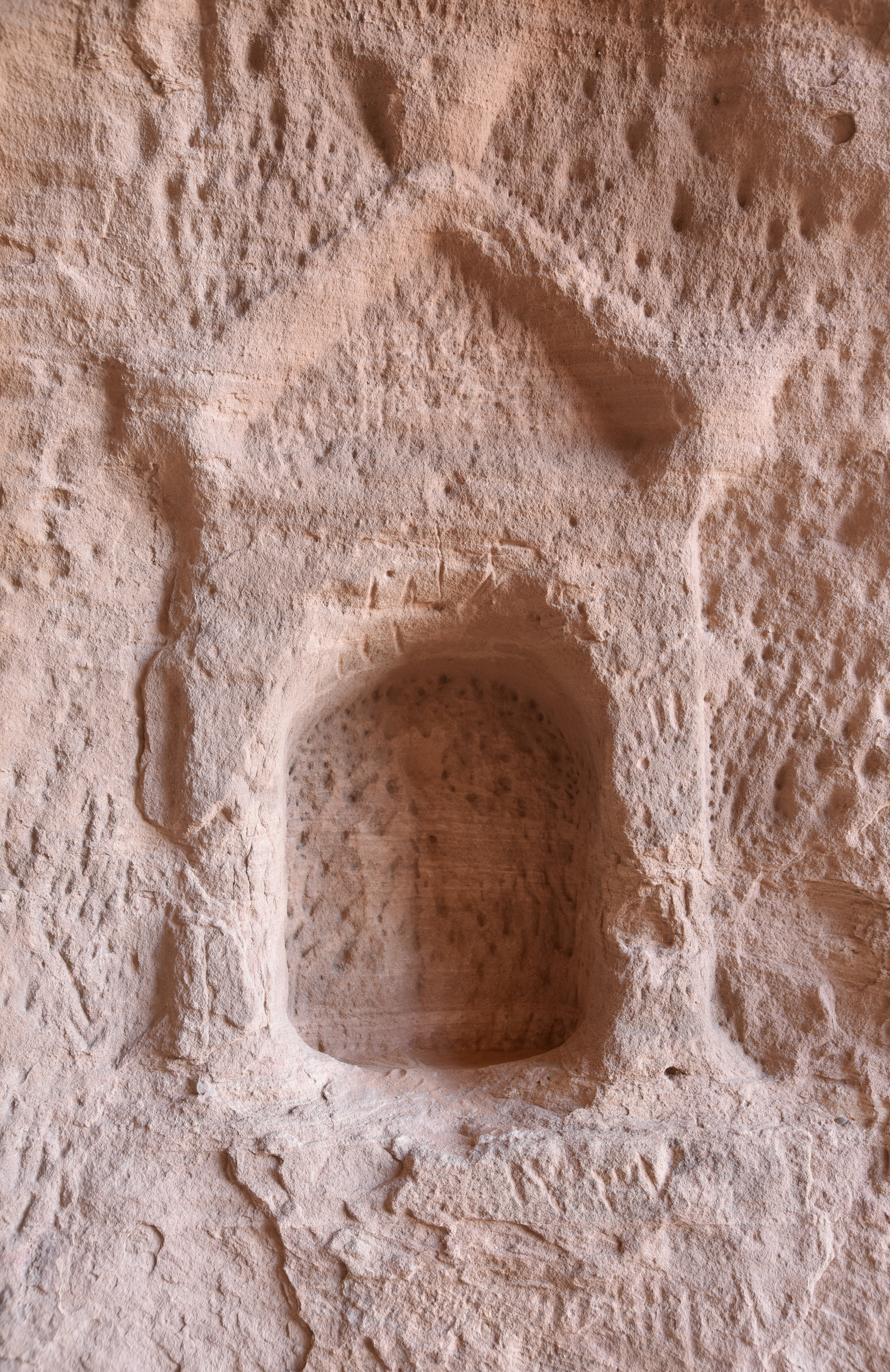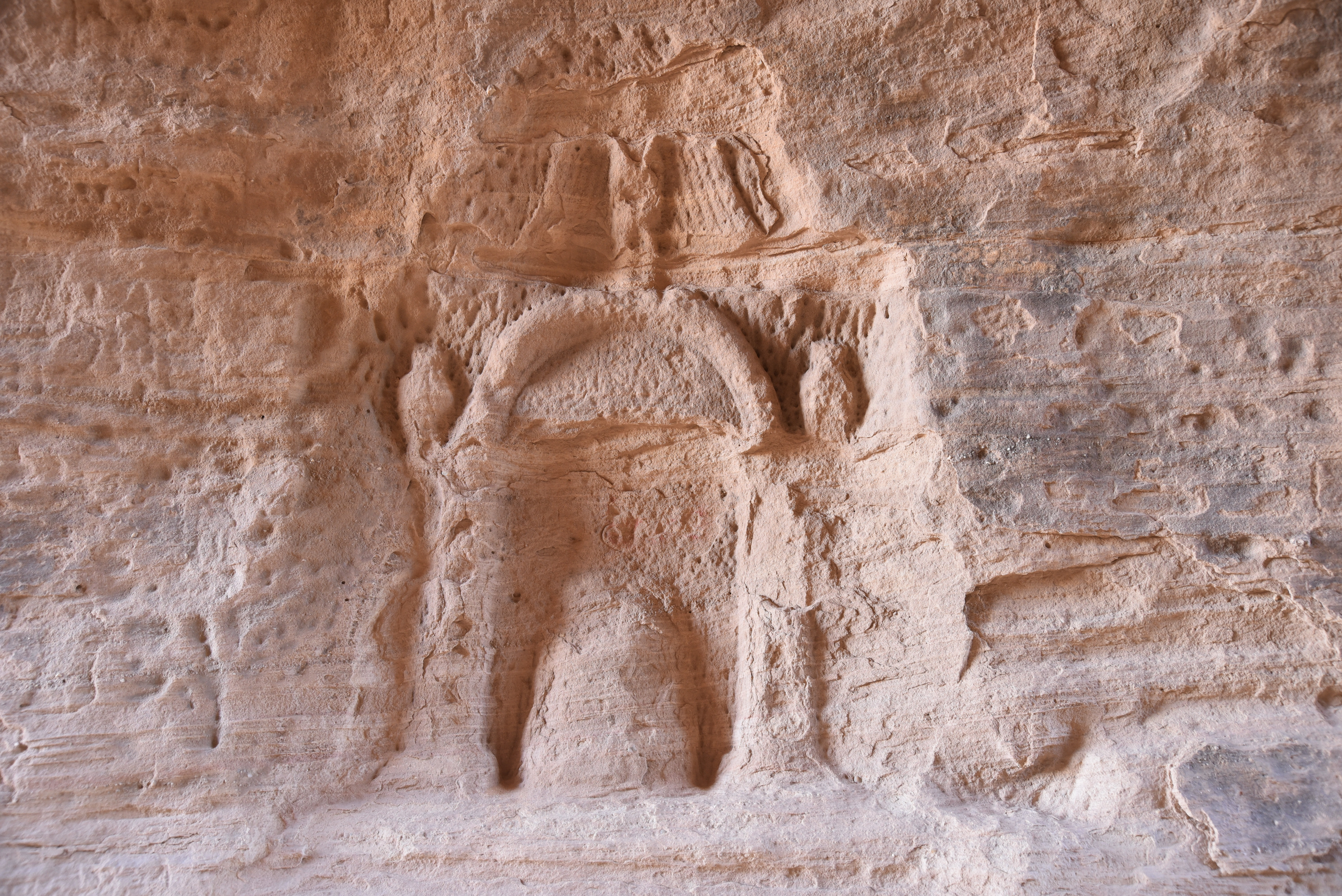Jabal Ithlib, located northeast of Hegra, features a complex of rock-cut structures that includes two triclinia, twenty-one sanctuaries, niches, and basins. This complex is not a necropolis; rather, it serves as a caravanserai and an entry point for caravans travelling to the necropolises and residential areas. The Ith20 triclinium (also known as IGN16 or Diwan) is situated at the entrance of the canyon in the western sector of the Ithlib massif, while the second, smaller triclinium is located further south within the massif.