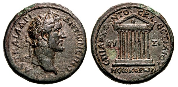 With the new Temple that Hadrian allowed to be built for his cult, the city of Cyzicus was granted the role of neokoros, temple warden of the imperial cult, joining Pergamon, Ephesus, Smyrna, and Sardis. In his Antilogy about Julian to the sophist Libanius, the 5th-century AD church historian Socrates of Constantinople states that the people of Cyzicus declared Hadrian the 13th god (Socr. Hist. Eccl. 3,23) while Antinous was also worshipped with heroic honours. Olympios was, therefore, an epithet associated with Hadrian, and there were dedications to Hadrian Olympios as the saviour and founder of the city. Linked with the city’s new status as neocoros in 124 (or later) was a Hadrianic festival called Hadrianeia Olympia, in which Aelius Aristides participated.