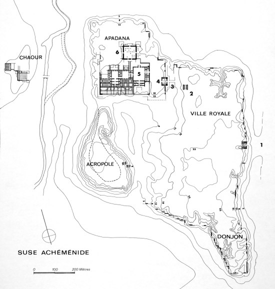 The site now consists of three gigantic mounds, occupying an area of about one square kilometre, known as the Apadana mound, the Acropolis mound, and the Ville Royale (royal town) mound. There is also a small palace (the “Shahur palace”) outside the walls on the west near the Shahur River. Another building, the so-called Donjon, at the far southern extremity of the city, is of uncertain date. Much of what can be seen today at the site dates back to Darius’ reign.