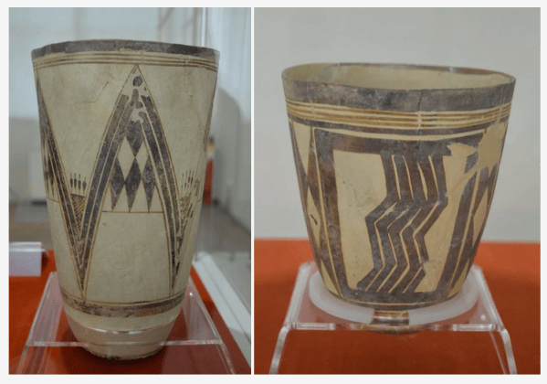 Painted pottery beakers from the Susa I period, 4300-4000 BC, from the Acropolis mound. National Museum of Iran, Tehran.