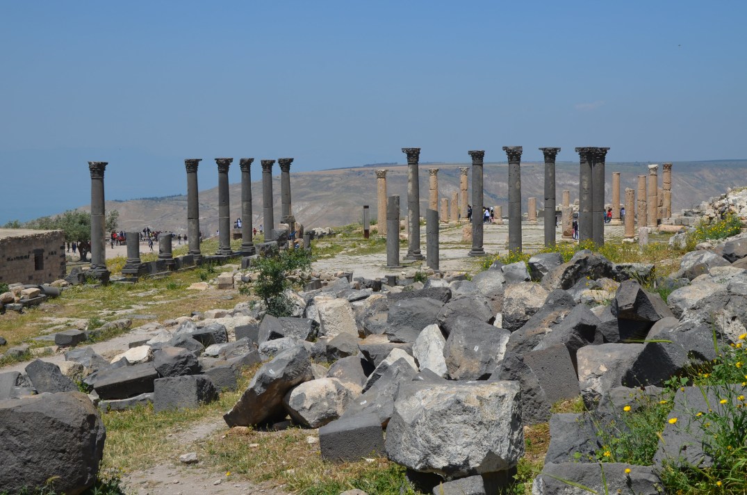 In the north-western corner of Jordan, 110 kilometres north of Amman in Jordan, are the ruins of the Decapolis city of Gadara, modern Umm Qais. Gadara is an ancient Hellenistic city founded by the Ptolemies as a frontier station on their border with the Seleucids to the north (gader meaning “boundary”). The site, situated on a broad promontory above the Jordan Valley, is striking because of its spectacular panorama, with views over three countries (Jordan, Syria and Israel), encompassing the Sea of Galilee and the southern end of the Golan Heights.