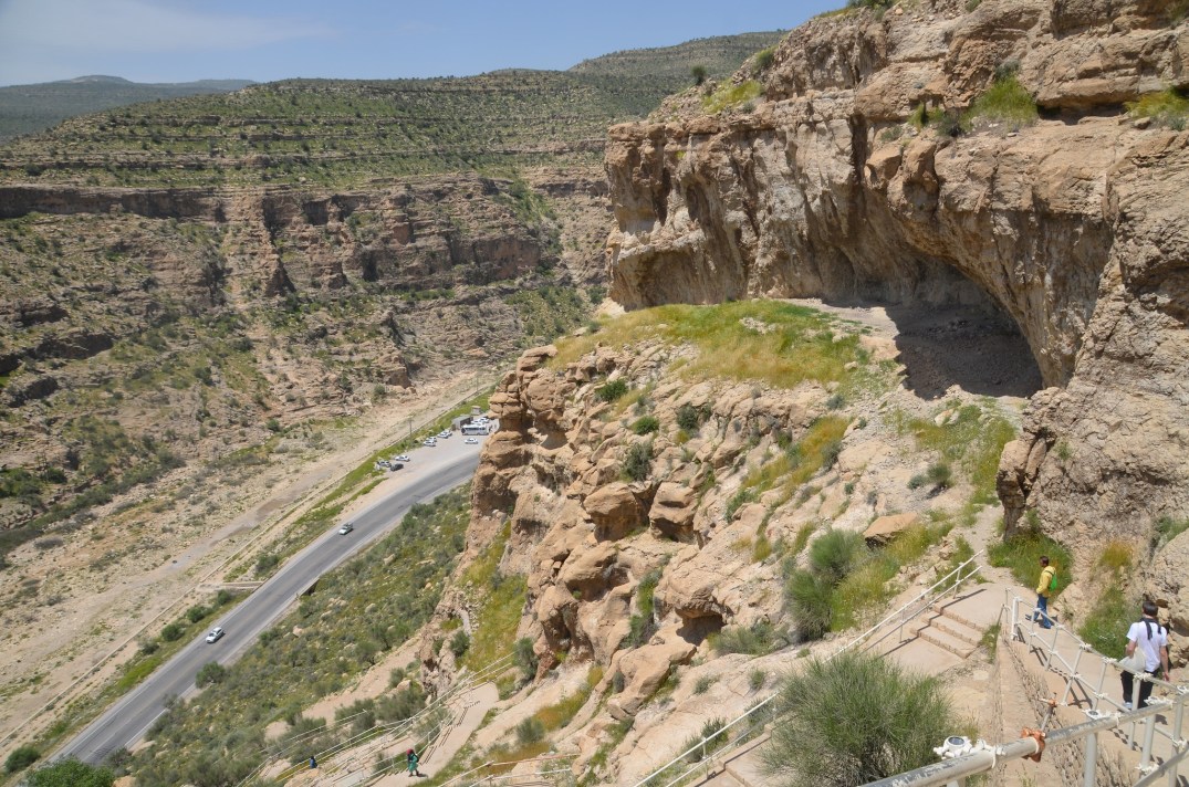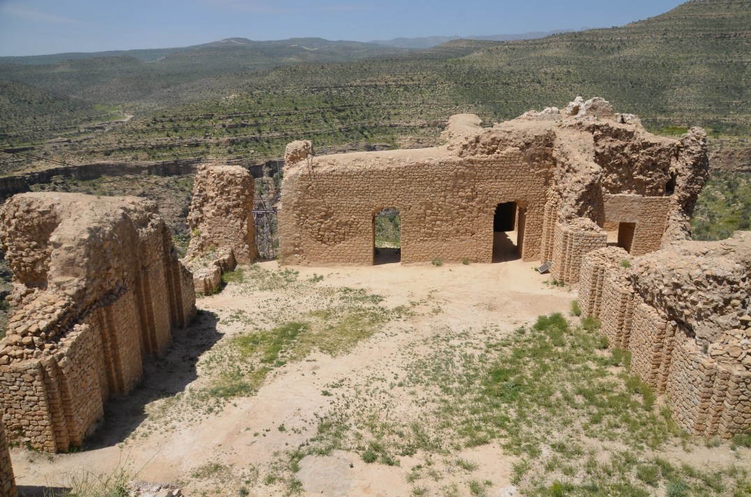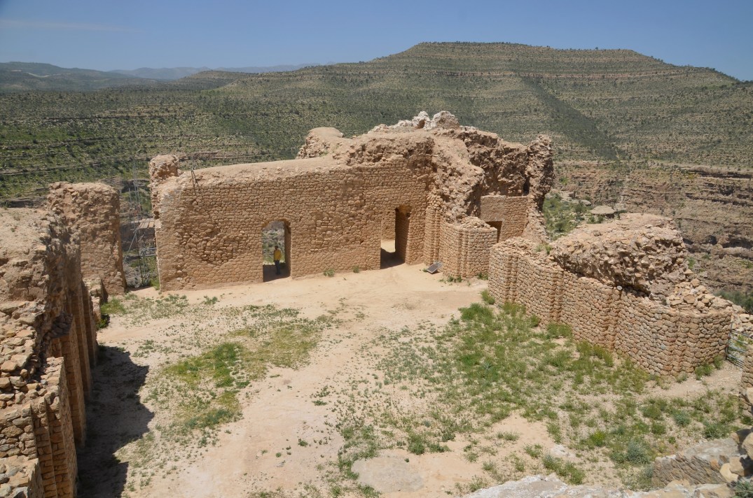 The Qal’eh Dokhtar fortress stands atop the mountain adjoining the river, four kilometres away from the palace of Ardashir. At the foot of the Qal’eh Dokhtar fortress are the remains of a Sasanian bridge, and on its opposite body a bas-relief depicting the crowning of Ardashir (see images here), the Pahlavi Sasanian inscription of Mihr Narseh (see image here), from the time of Yazdgerd II, and at a small distance, the bas-relief depicting the victory of Ardashir over Ataban V, the last Parthian king (see images here).