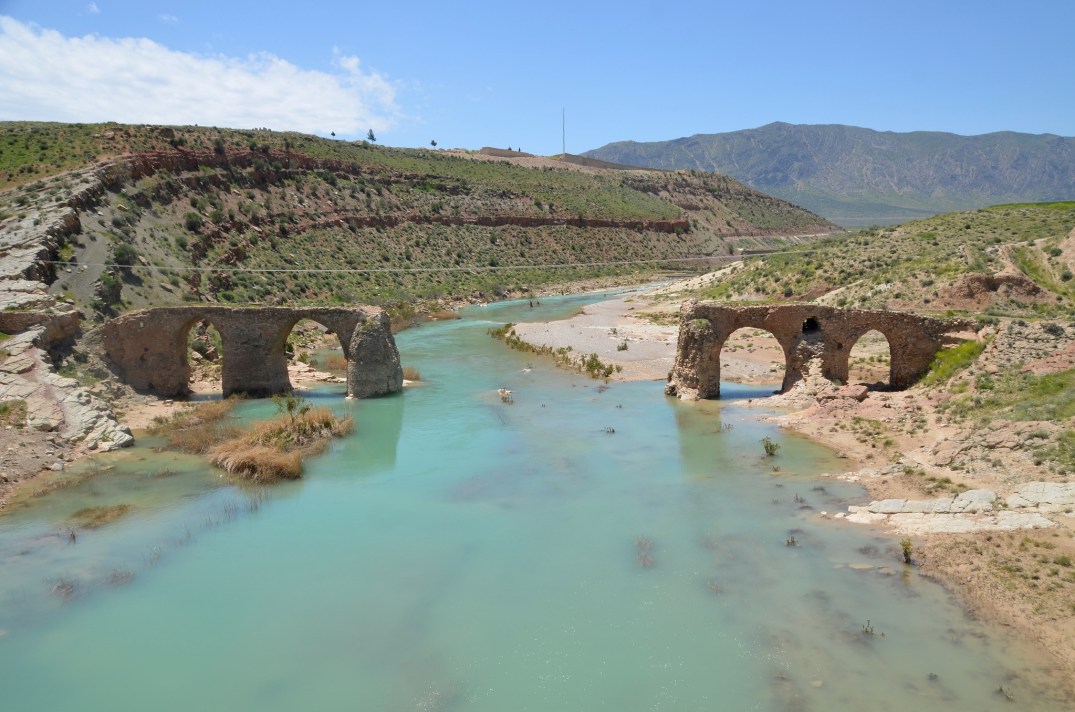 The ensemble at Firuzabad comprises, within a 14 km diameter area, of a monumental memorial to the founder of the Sassanid state with archaeological sites including the ancient city of Gur, the Palace of Ardashir, the Qal’eh Dokhtar fortress and reliefs from the time of Ardashir, as well as the 5th-century Pahlavi inscription and bridge of Mihr Narseh (see here). Fifty kilometres away from Gur, south of modern Kavar, stands a 125-meter-long bridge spanning the Qara Aqaj River. It was built on arches during the time of Ardashir, probably by Roman engineers. This ensemble embodies the political, historical, cultural and artistic developments of the early Sassanid period. Gur and its surrounding structures, were part of the Ardashir-Khurrah (“Glory of Ardashir”), one of the five administrative divisions (kūra) of the Fars province of Iran.