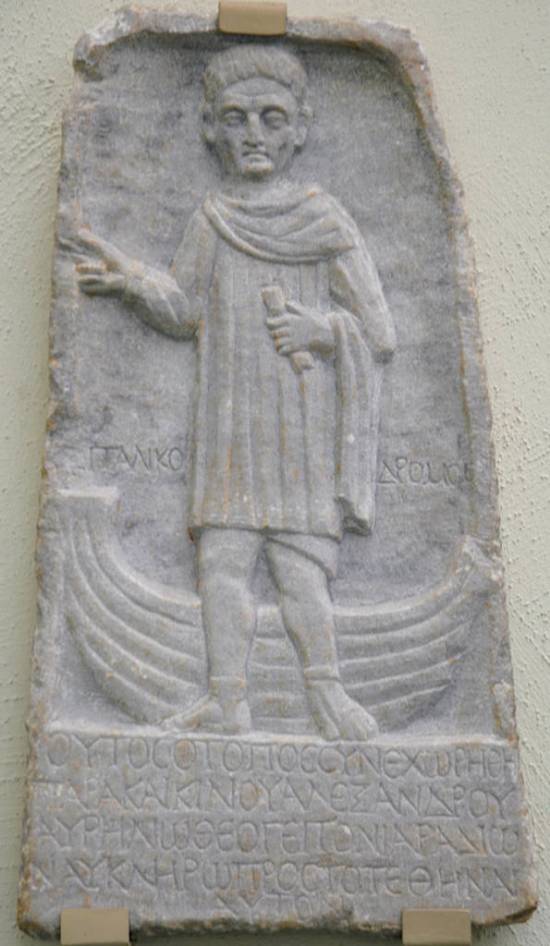 Tombstone from Mainz-Weisenau depicting a warship from the 1st century AD (original at the Generaldirektion Kulturelles Erbe, Direktion Landesarchäologie, Mainz).Relief depicting soldiers on a ship of the Neumagen type (original in the National Museum in Naples), 1st century BC / 1st century AD.Relief of a Mediterranean cargo ship, 1st – 3rd century AD.Tombstone of the ship owner (naukleros) and sailor Aurelius Theogeiton from Arados in Syria, early 3rd century AD. He seems to have been one of those ship owners who navigated their vessels by themselves between the Eastern Mediterranean and Italy.Relief of a marble coffin depicting a crewship raising the sails of two cargo ships in front of a harbour (original in Allard Pierson Museum, Amsterdam), 3rd century AD.Museum für Antike Schiffahrt, Mainz.Museum für Antike Schiffahrt, Mainz.Museum für Antike Schiffahrt, Mainz.