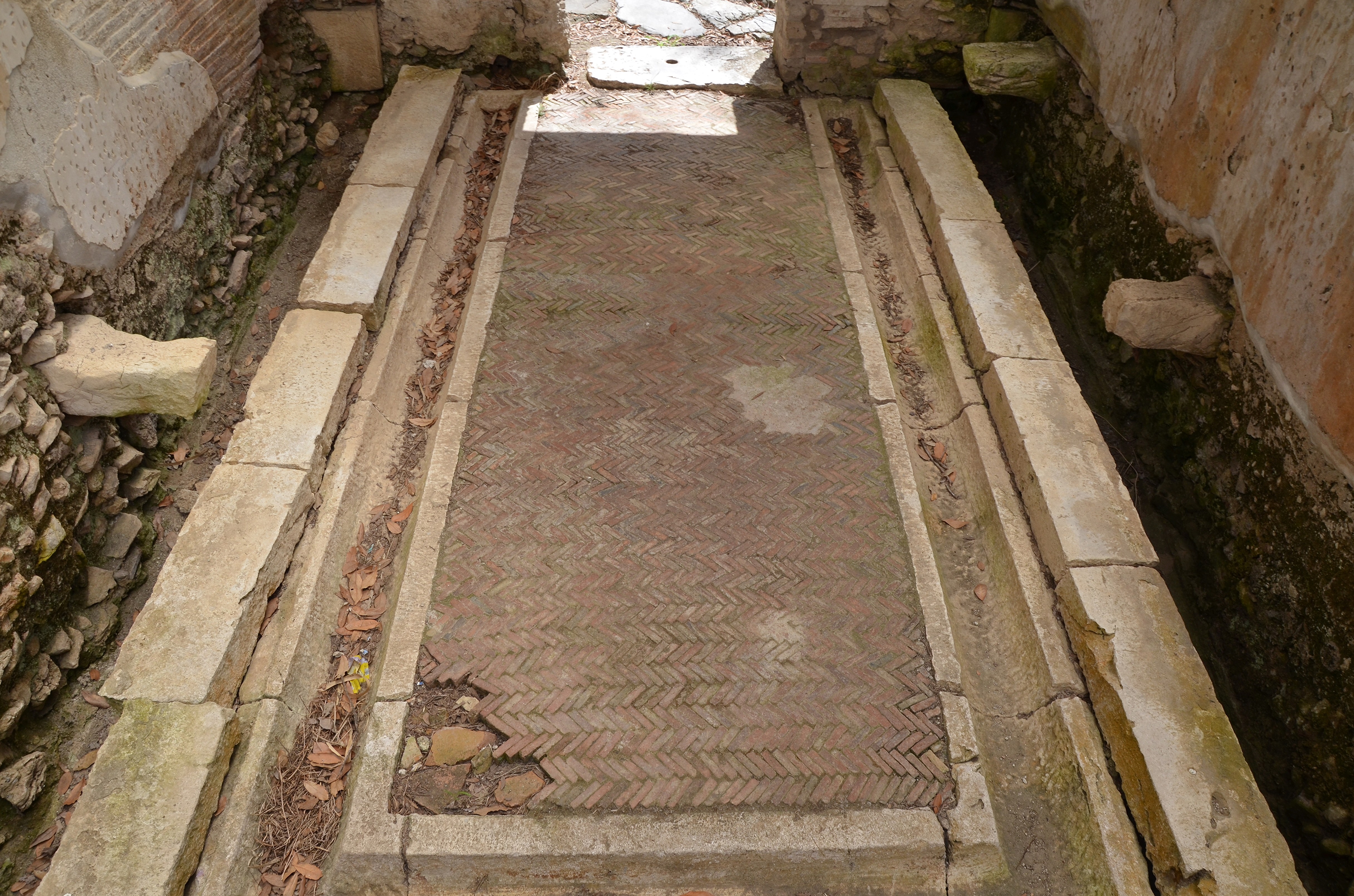 The Republican forum and the Roman theatre were built in the Late Republican era or at the beginning of the Empire.The Roman theatre was built in the Late Republican era or at the beginning of the Empire.The podium of the Temple of Augustus was built at the beginning of the Imperial age, right alongside the Capitolium.The Republican forum and the Temple of Augustus podium.The ruins of the Capitolium (temple dedicated to the triad Jupiter, Juno and Minerva), an Etrusco-Italic type temple built ca. 191 BC.The reconstructed monumental colonnade along the Appian Way with the macellum behind.The Via Appia.The macellum (market) and the tabernae dating to the Hadrianic period (117-138 AD).The macellum (market) and the tabernae dating to the Hadrianic period (117-138 AD).Black & white mosaic in the caldarium of the thermae depicting cupids pressing grapes.The tepidarium, the warm bathroom of the baths complex heated by a hypocaust (underfloor heating system).The ruins of the Hadrianic Basilica of the Imperial Forum.The latrines, located in the Imperial Forum.The Aqueduct near Minturnae, built between the end of the Republic and the beginning of the Empire.Epigraph dedicated to Hadrian as Augustus and Pater Patriae (Father of the Country), attributed to Hadrian in AD 128. Antiquarium of Minturnae.