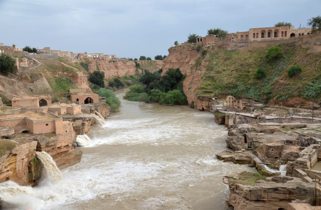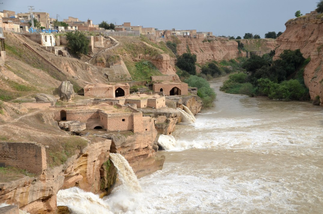 During the Sassanid era, Shushar was a fortified island town formed by the river Karun. The Sassanids, whose economy depended largely on agriculture, developed large irrigation systems in the region. They diverted the river Karun through large-scale civil engineering structures such as water canals, watermills and dam-bridges. One of these structures, known as the Shushtar Historical Hydraulic System, was registered in UNESCO’s list of World Cultural Heritage Sites in 2009, referred to “as a masterpiece of creative genius”. It comprises of fourteen mills and waterfalls flowing downstream from tunnels and cascading over rock cliffs.