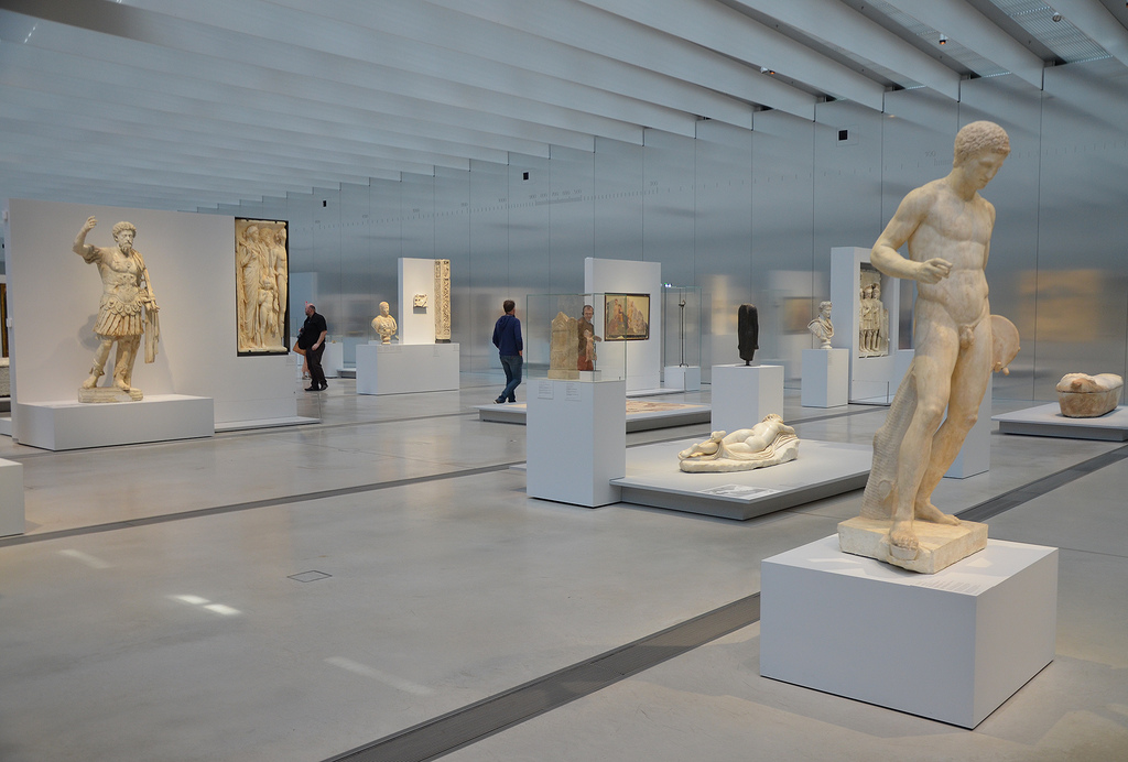 The Engine Room: the largest and most impressive room displaying a series of exquisite marble statues and rare Greek originals, arranged around two huge diesel engines and a steam turbine. Occupying the other end of the room is a reconstruction of the pediment of the Temple of Apollo Sosiano, a temple dedicated to Apollo in the Campus Martius.